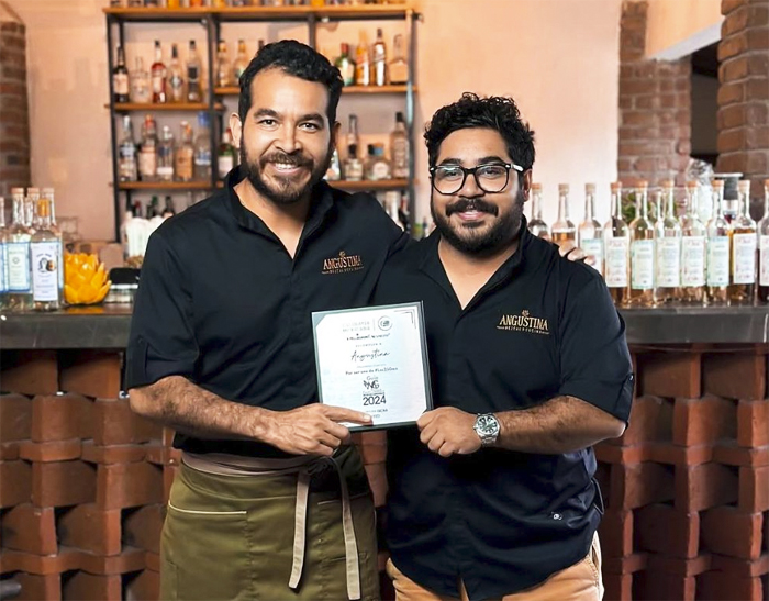 Pero Angustina no solo es cocina, también es mezcal. Y de eso se ocupa Antonio Meneses, hermano del chef Felipe y toda una autoridad en esta líquida materia. Dejarse caer por Angustina para probar los platos que prepara Felipe, armonizados por la amplia variedad de mezcales que atesora esta casa y conversar con Toño Meneses sobre el mundo del mezcal es una experiencia realmente enriquecedora.