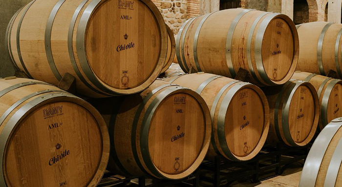 Barricas en la bodega de Chivite
