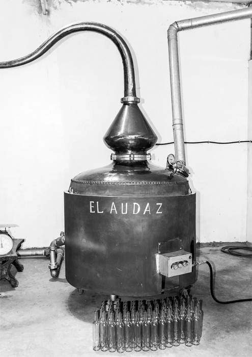 Alambique que se emplea para la destilación de pisco en la bodega Murga