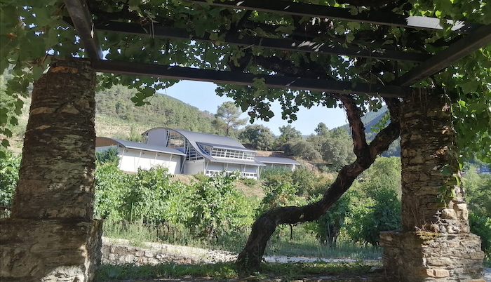Parra centenaria en Godeval, con la bodega al fondo