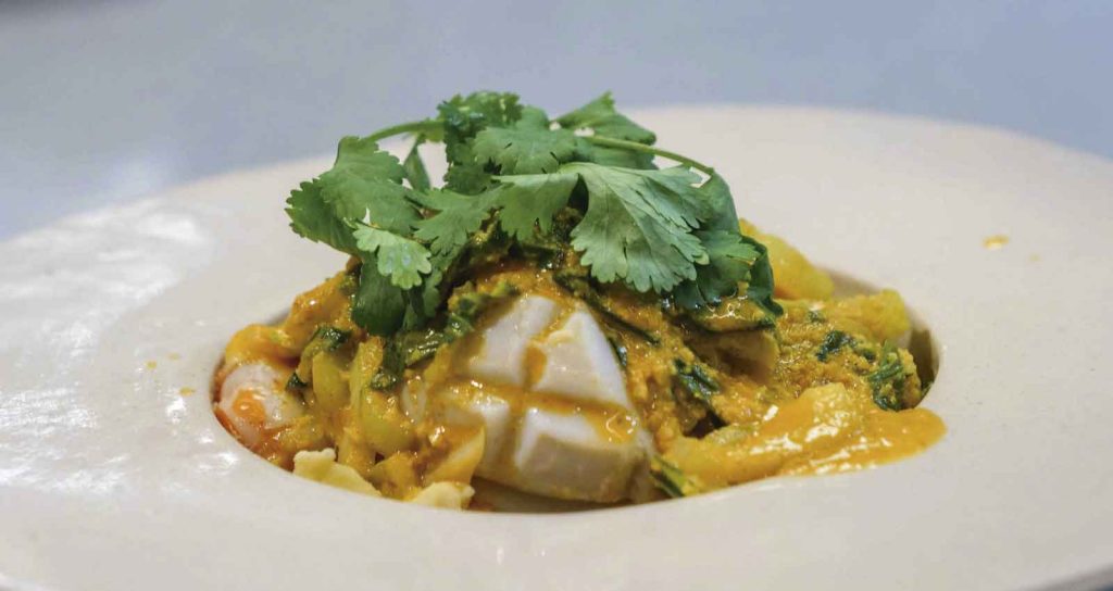 Leer másCurry verde de Pak Choi con arroz con calamares y gambas