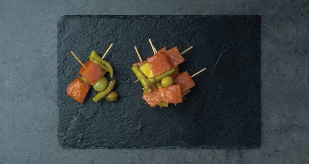 Un toque moderno para reinventar un pincho clásico, original receta con salmón noruego ahumado como aperitivo, entrante o acompañamiento.