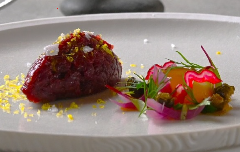 “Nuestra especialidad es lo que ofrezca la temporada, el I+D lo marca la huerta, la tierra, nuestros ganaderos, agricultores, artesanos…”, resume la cocinera, quien presenta como “pura magia” el viaje realizado por el agua salada que brota de la tierra desde hace 7.000 años. Así, en su casa puedes encontrar pétalos de vieira curada con remolacha deshidratada y fresas fermentadas, ravioli de trigo de salcedo sobre guiso de sasi ardi (raza de oveja autóctona), steak tartar de potro…