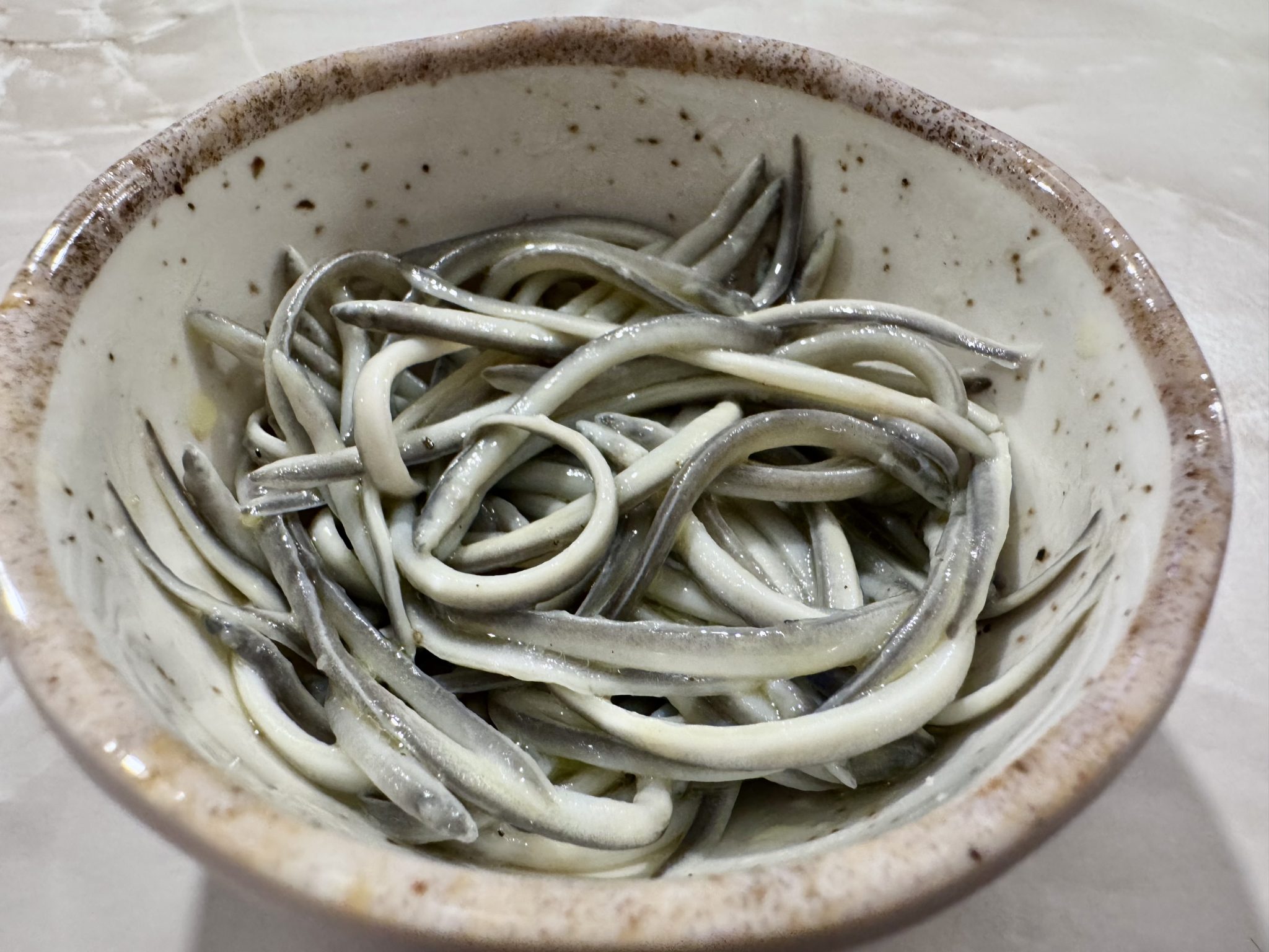 Entramos de lleno en el vértice del debate. ¿Qué placer proporcionan unos alevines que carecen de sabor? Textura y poco más. Ese tacto crujiente, resbaladizo y viscoso que al morderlas provoca resistencia al diente. Sensaciones que se tornan algo más incisivas cuando las angulas con el paso de los días en agua dulce desarrollan el lomo negro en su proceso de evolución. A las mesas casi siempre llegan desdibujadas por los conocidos sabores del ajo y el aceite de oliva, con el picante de las guindillas en la fórmula tradicional. Tan inexpresivas como en ensalada aderezadas con idénticos condimentos. Lo reconozcamos o no son la gran locura gastronómica española, un capricho raro reservado a minorías cuyo precio no deja de ascender.