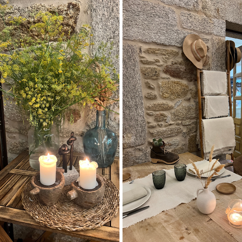 Manteles de lino gallego, platos de artesanos del barro como Alberto Lista, del cercano pueblo de Buño, bandejas de madera, copas de vidrio tallado, lámparas tejidas, flores por todas partes y la calidez de una casa vivida, en la que cada visitante acaba sintiéndose parte de la familia ¿No es ese el sentido de la hospitalidad? Todo fluye con naturalidad, las peticiones, las explicaciones, los ofrecimientos. Pocos como Varela para explicar su comarca y suscitar la curiosidad de quien le escucha. Lo mismo da que hable del muelle de la playa de Balarés, la mina de wolframio, los nazis contrabandistas y las ballenas varadas; de las historias del Cabo Roncudo, donde las cruces que recuerdan a los desaparecidos en la mar se elevan sobre las rocas donde crecen los mejores percebes de España; o que te explique la diferencia entre las navajas y los longueirones.