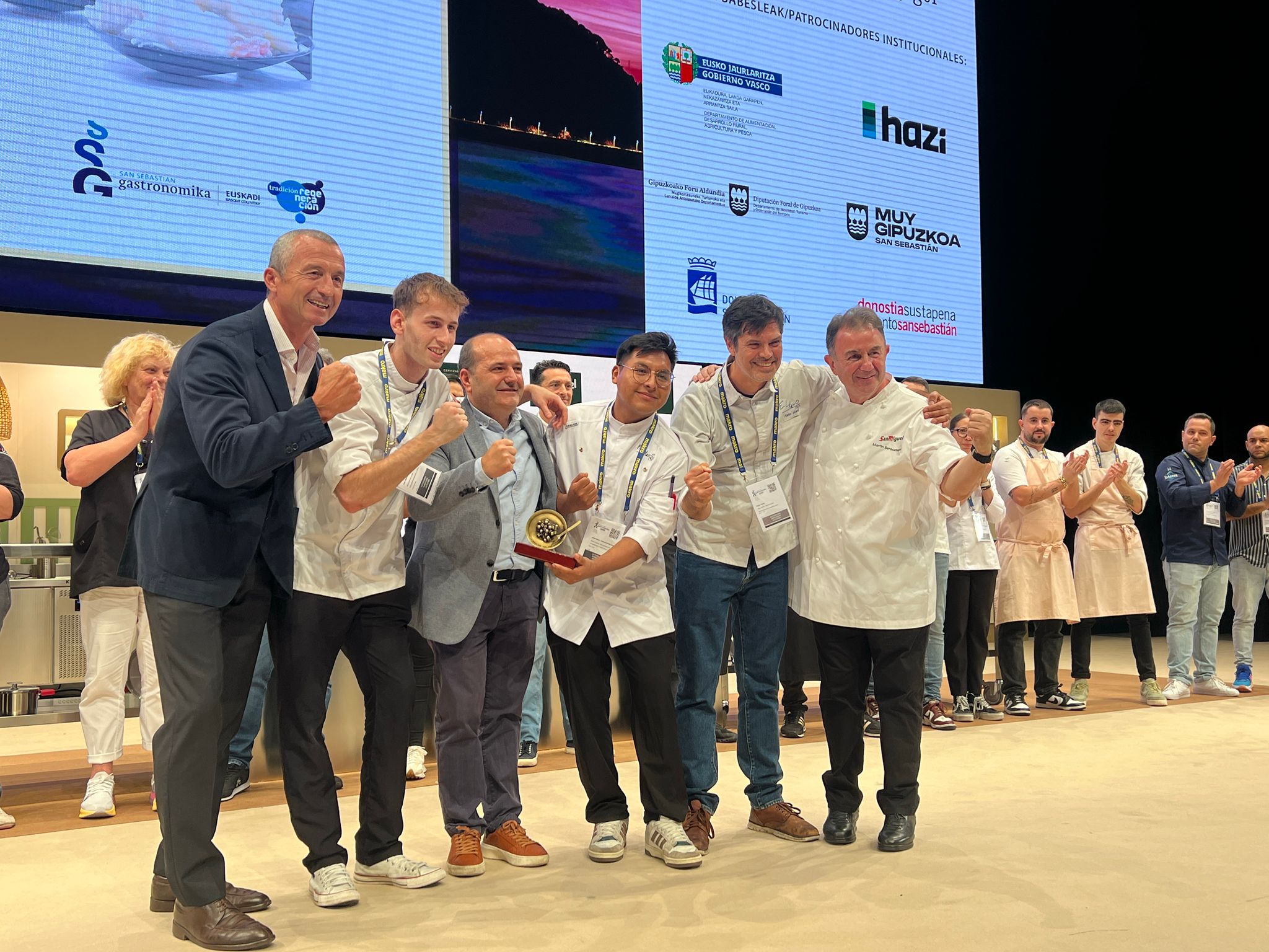 Pablo Vicari y el equipo del restaurante Elkano Txiki (Getaria, Guipúzcoa), resulta vencedor de la VIII edición del Campeonato Nacional de Ensaladilla Rusa San Miguel en el Congreso de San Sebastián Gastronomika 2025.