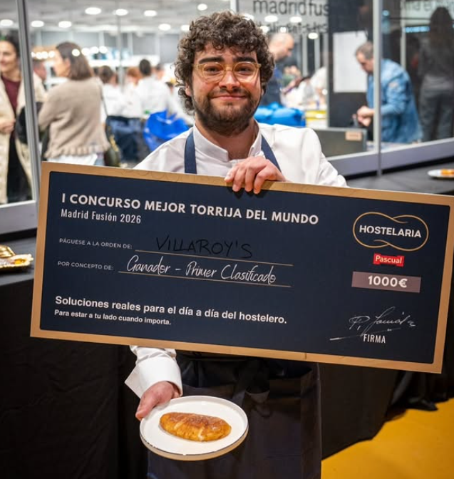 En un homenaje a la tradición, la torrija ganadora fue elaborada por Martín Javier Martínez de Villaroy’s, en Madrid. Su propuesta utilizaba un bollo de pan de leche empapado en infusión de leche y nata con piel de limón y canela, logrando un postre jugoso, equilibrado y lleno de sabor.