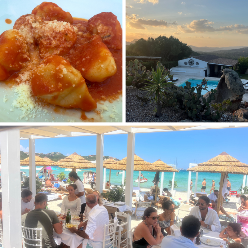 En esta zona de Cerdeña hay pocos hoteles, pero bastantes alojamientos rurales, antiguas casas de labranza reconvertidas a muy pocos minutos de las calas de aguas cristalinas. Ojo porque los locales conducen deprisa y algunos accesos son complicados. Entre nuestras favoritas la playa de Marinella, en el golfo de Marinella, junto a Porto Rotondo, donde se puede alquilar un barco para ir a la isla de Mortorio para bañarse. En las playas italianas hay chiringuitos que alquilan tumbonas, sombrillas y ofrecen comida, Il Regolo es uno de ellos. Especialidades sardas: pasta y mariscos.