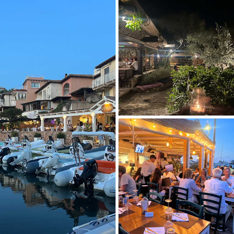 1.- Babussa en Porto Rotondo.2.- Lu Stazzu. 3.- Café de la Marina.