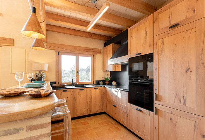 El medio rural pide cocinas amplias, pero acogedoras y polivalentes. Los acabados rústicos, la madera sin tratar y las encimeras de piedra son protagonistas. Diseños en forma de U o con estancias independientes, son cocinas que poseen el carácter multifuncional del hogar rural: comedor, taller, despensa y punto de encuentro. La sostenibilidad es fundamental, especialmente en regiones del sur, con soluciones para reducir el consumo de agua y mejoran la eficiencia energética.