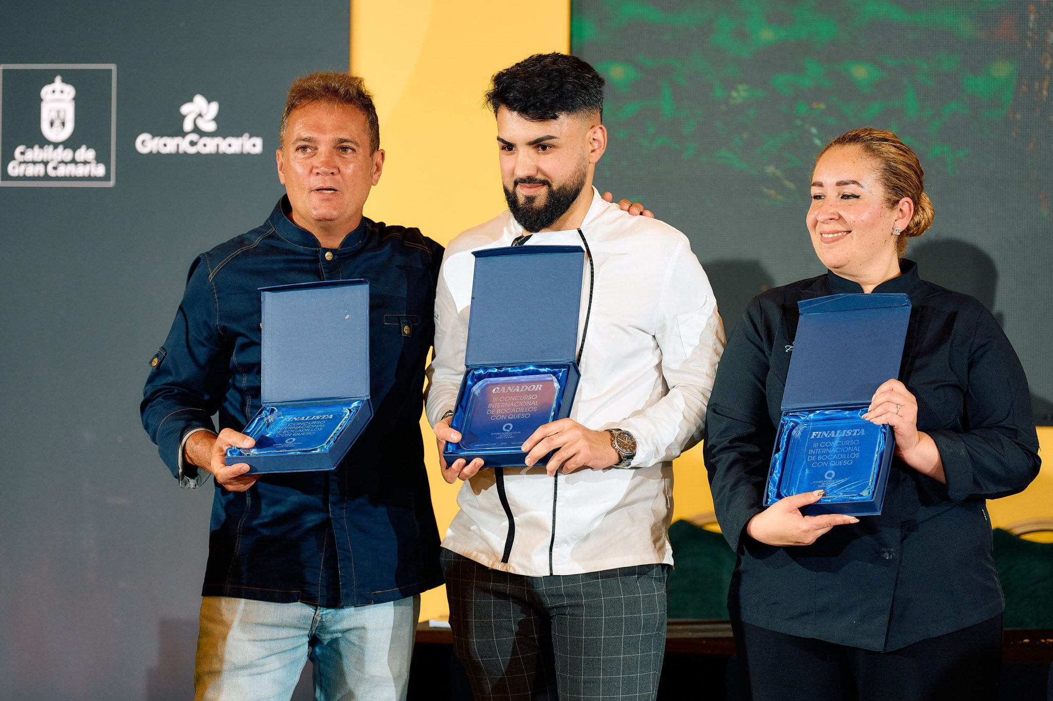 Los dos finalistas han sido: Yaiza Acuña, que ha presentado un bocadillo con carne jamonada, cebolla caramelizada, queso asado ahumado de flor de guía, mojo de pimientos, tomate natural y huevo frito, y Antonio Cavanillas, que ha propuesto un Bombón de quesos de Gran Canaria con sardina ahumada y kimchi de encurtidos.