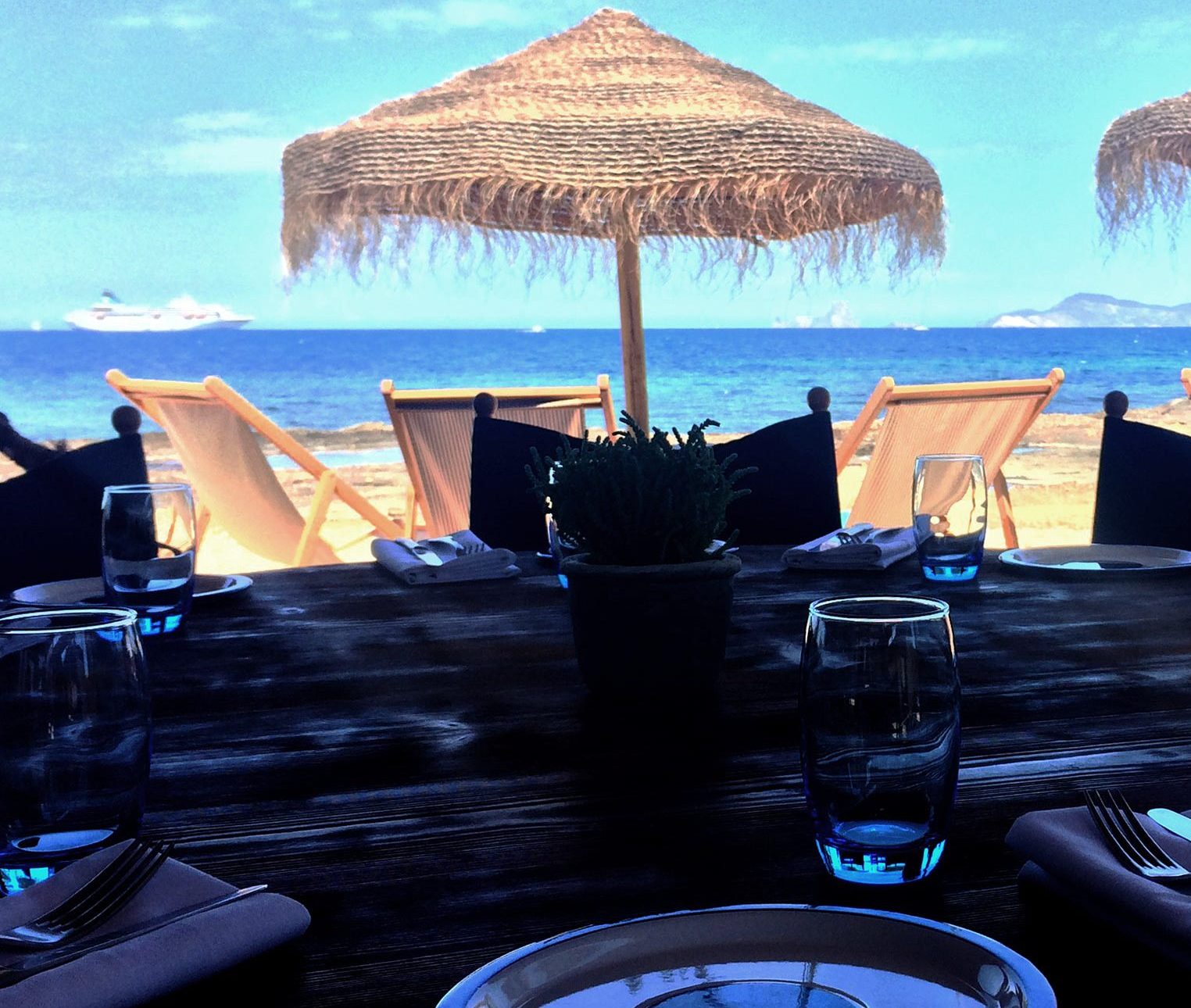 Uno de los mejores chiringuitos para comer bien en Ibiza, sobre todo fuera de temporada porque en verano es imposible. El ambiente es estupendo y eso se paga. Manteles y servilletas de tela sobre la arena de la playa, buenas copas y un equipo bien entrenado para atender a los clientes que se esconden bajo las sombrillas de paja. Además tumbonas y todo lo necesario para pasar un día de playa.
