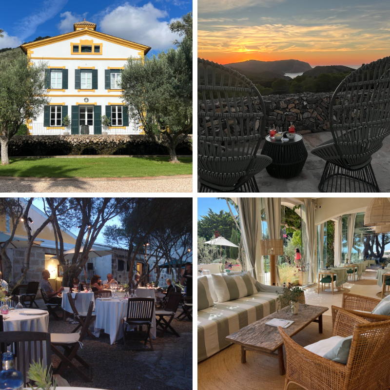 Especialmente pensado para parejas (Adults only), esta casa de campo convertida en hotel es un refugio ideal. Habitaciones amplias y luminosas, en las que predomina el blanco y los tonos naturales. Jardines repletos de flores y un personal pendiente de todos los detalles. La oferta gastronómica está dirigida por el joven cocinero menorquín José María Borrás que en el restaurante Aquiara trabaja con los productos locales desde una óptica contemporánea muy personal. Es fantástica su versión de los raons, pescados muy apreciados en Baleares.