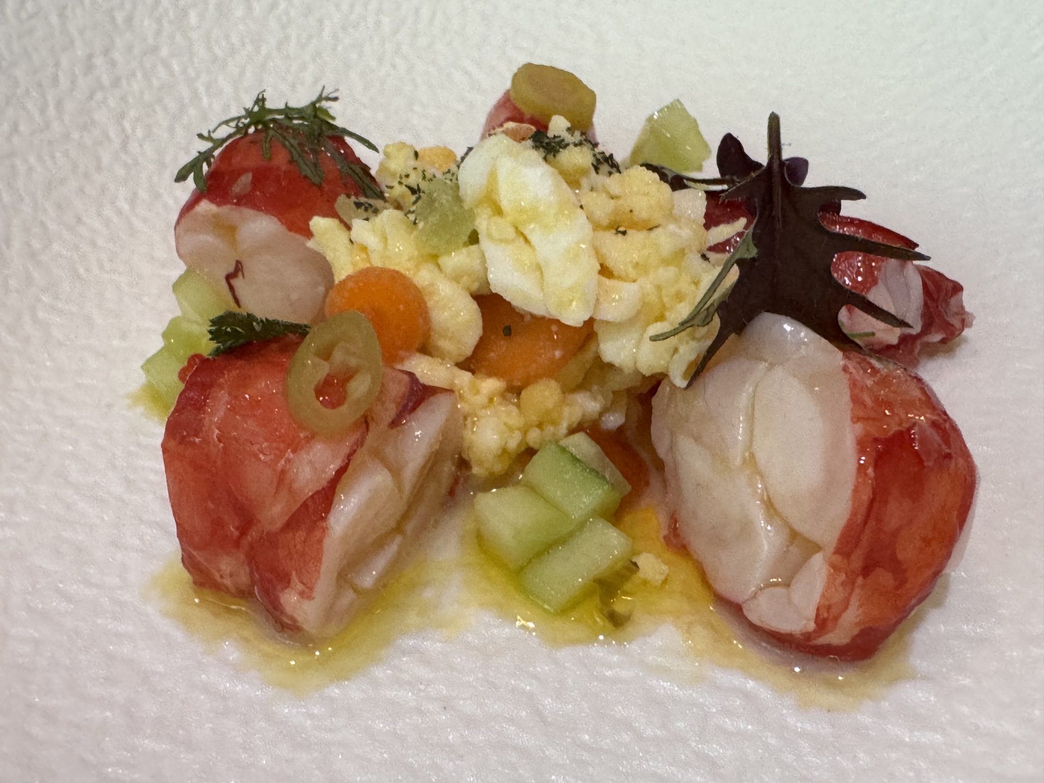 El salpicón de carabinero del Atlántico a la mostaza con huevas de botarga y encurtidos, Mole verde poblano y huevo aliñado con vinagre de Jerez”, es un homenaje al Madrid moderno y cosmopolita donde los mariscos siempre han sido un reclamo y los productos más exóticos han gozado de excelente acogida.