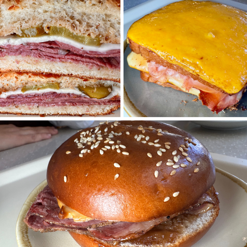 1.- Bocadillo de pastrami al corte. 2.- Sandwich de jamón y queso cheddar. 3.- Bocadillo de pastrami