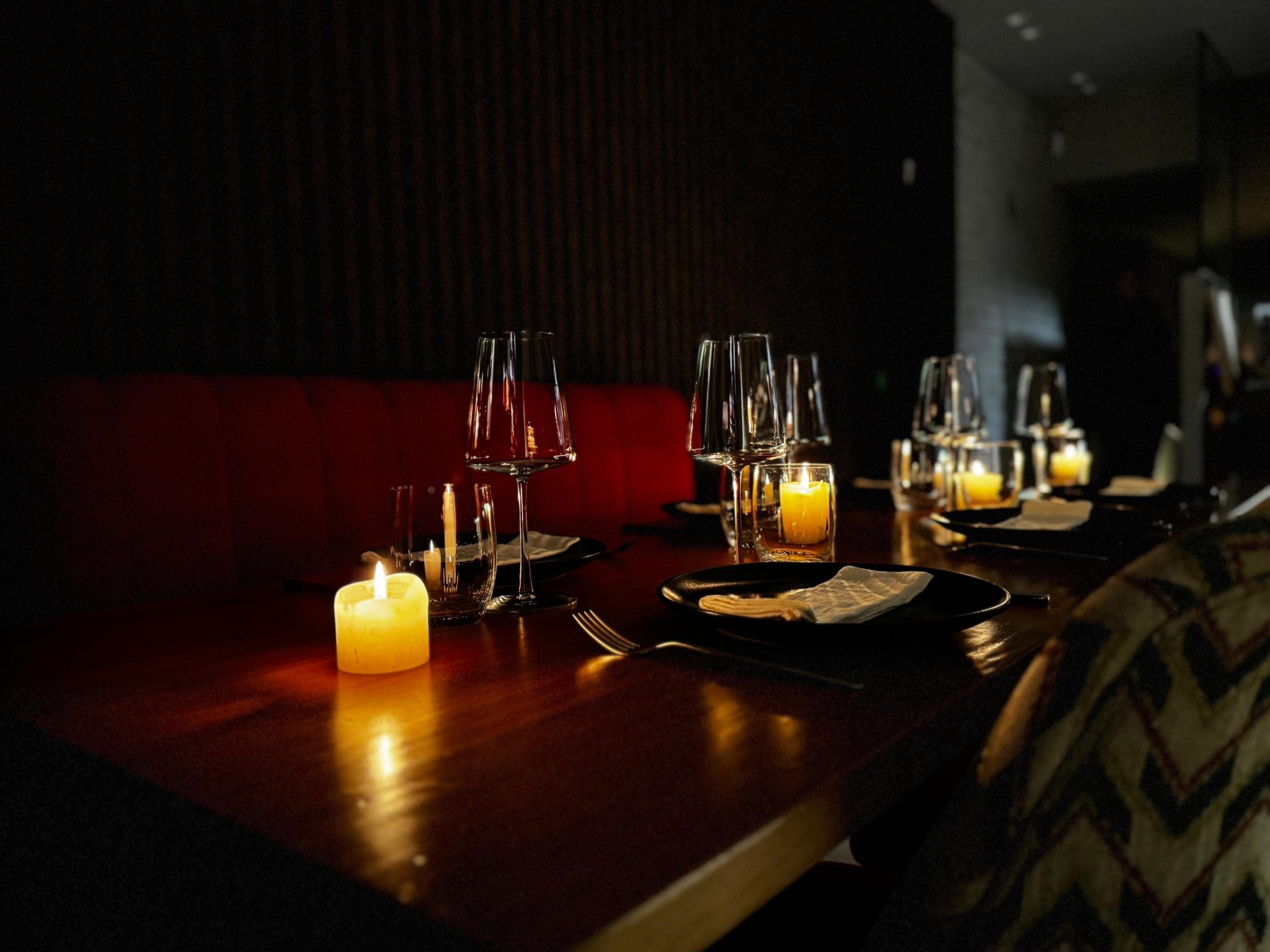 El espacio acompaña esa misma filosofía. La iluminación tenue, los materiales naturales y una distribución pensada para favorecer la cercanía entre cocina y sala crean una atmósfera íntima. Más que apostar por un escenario espectacular, el restaurante prefiere un entorno discreto en el que el protagonismo recae en los platos y en la cocina.