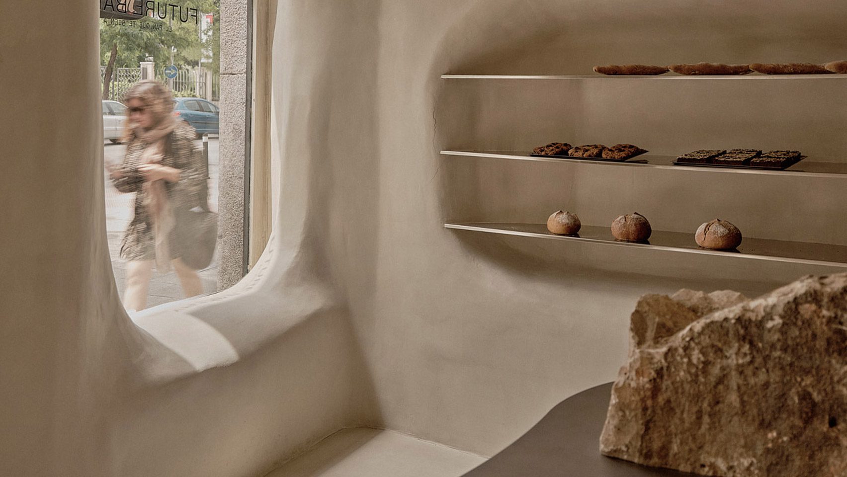 ¿Será esta la bollería del futuro? Sin gluten, sin azúcares y harinas refinadas y sin aditivos. La tarea no es fácil, pero Fabián León, finalista de Master Chef y potente creador de contenido ha decidido compartir con el mundo los descubrimientos culinarios a los que le ha llevado una búsqueda personal para encontrar productos que le sentaran bien. Así surge Future Baker (FU.BA). Además de panes, ofrecen cookies, bizcochos y brioches -no es posible hacer mucho más sin las potentes cadenas del gluten- elaborados con harinas ecológicas, superalimentos y adaptógenos (hierbas, raíces y hongos naturales). en el proyecto le acompaña un equipo heterogéneo que incluye a Inês H. Da Silva, chef formada en Le Cordon Bleu; Oriol Reull, ex director general de Too Good To Go y David Moreno, cofundador de la marca de gafas de sol Hawkers. El diseño del local se lo encargaron a Isern Serra, un estilo minimalista, formas curvas y texturas naturales, para crear un ambiente futurista, como los productos que contiene.