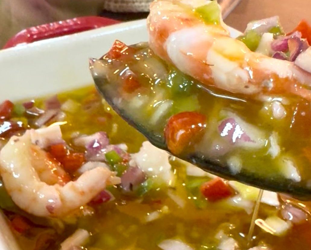 Refrescante, sabroso y capaz de abrir el apetito, el salpicón de marisco (30€/500 gr) es uno de los entrantes estrella de las fiestas navideñas. En Cocinería 44 (Mercado de Chamartín) lo preparan estupendamente, pero no es lo único que cocinan en Navidad: croquetas (1€/unidad), bullabesa (60 €/3 pax), canelones (3€/unidad), jarretes (47, 50€), capones rellenos (165€). Como dice su eslogan «Alex cocina por ti» y lo hace de maravilla. Hay que recoger los pedidos en el mercado.