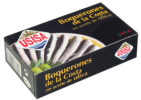 Anchoas (bien en aceite de girasol o de oliva) de Hacendado. Entre 2 y 3 euros el paquete de tres. De Mercadona.