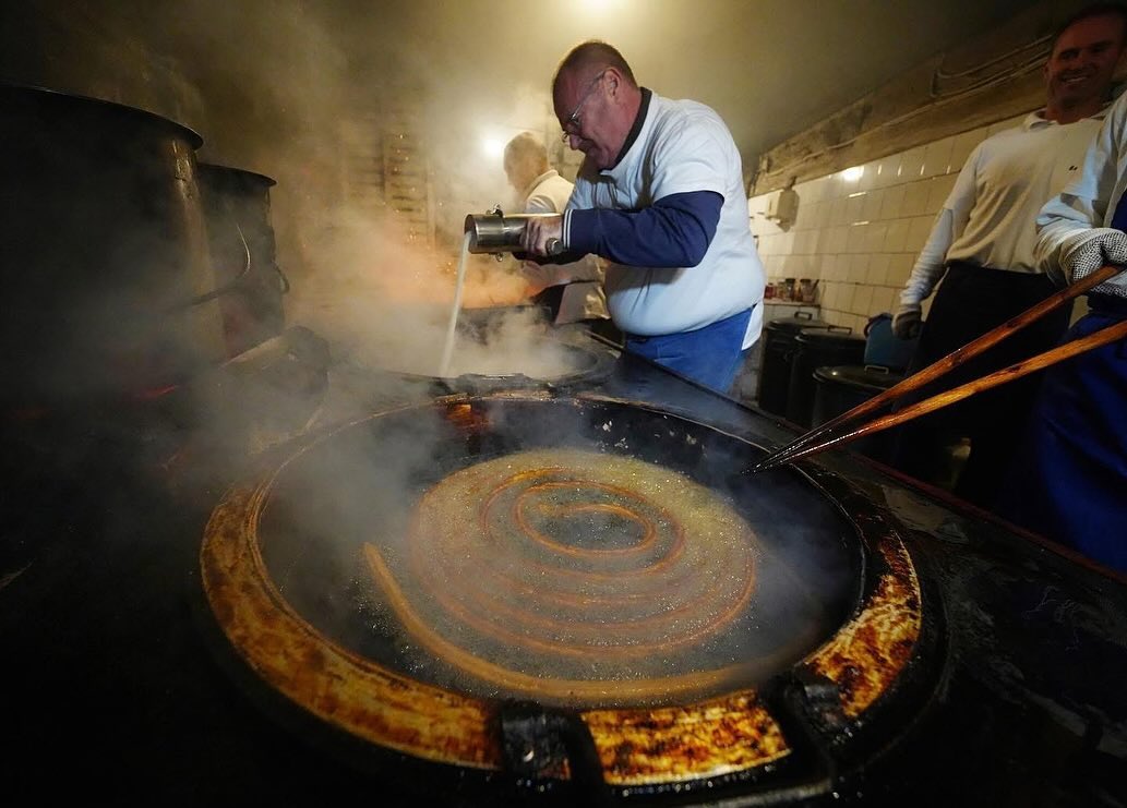 La sexta generación de la familia Elizalde – Fernández regenta esta churrería fundada en 1872 que solo abre al público durante las fiestas de San Fermín, los dos sábados previos y los domingos de octubre. “Son los mejores churros que he comido en mi vida. Los hacen a la leña (de haya de los bosques de Aralar, Urbasa y Selva de Irati) y es un auténtico espectáculo entrar y ver a 30 tíos amasando, cortando leña y elaborando”, describe Santi Guindano. Otro seguidor de esta “tradición sanferminera”, frita en aceite de oliva de Tarazona, es Leandro Gil; dice el cocinero que “es un sitio diferente, mantiene toda la esencia y, si se puede ver desde dentro cómo hace los churros el marmitón, es un espectáculo”.