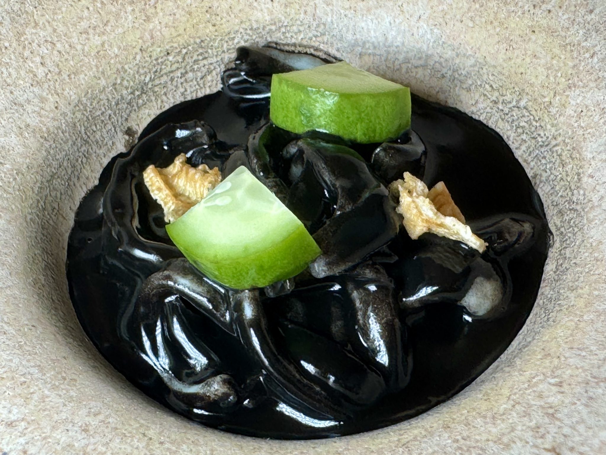 Gómez no es anárquico, pero lo parece; no ahonda en las raíces de la Serranía de Ronda, sino que se distancia de casi todo de espaldas a los desgastados argumentos del mundillo culinario. Nada de cocina de proximidad, de fermentados y proteínas alternativas, ni de discursos en torno a prácticas sostenibles. Alta cocina con mayúsculas rodeada de ese buen humor que derrocha a raudales.
