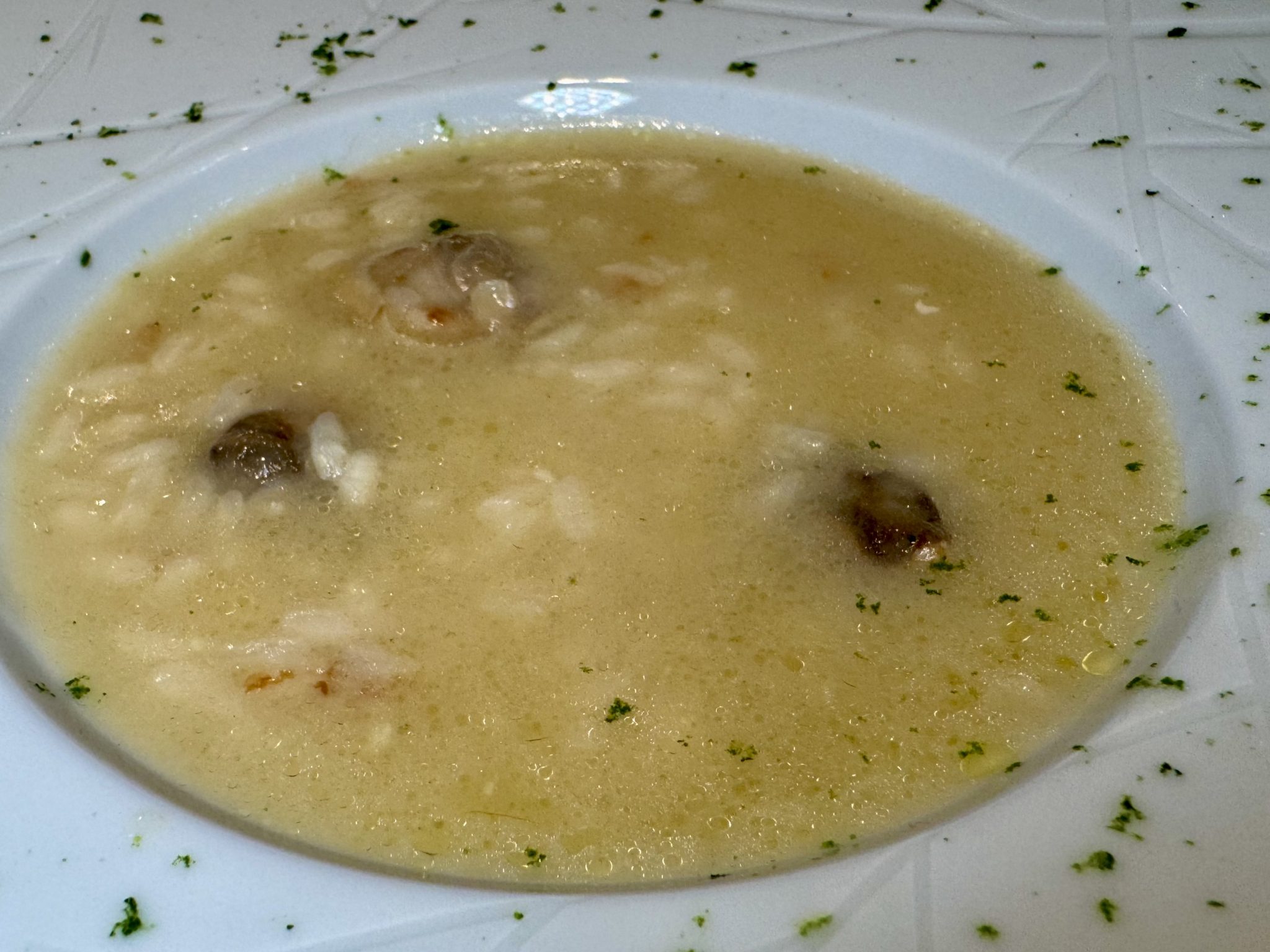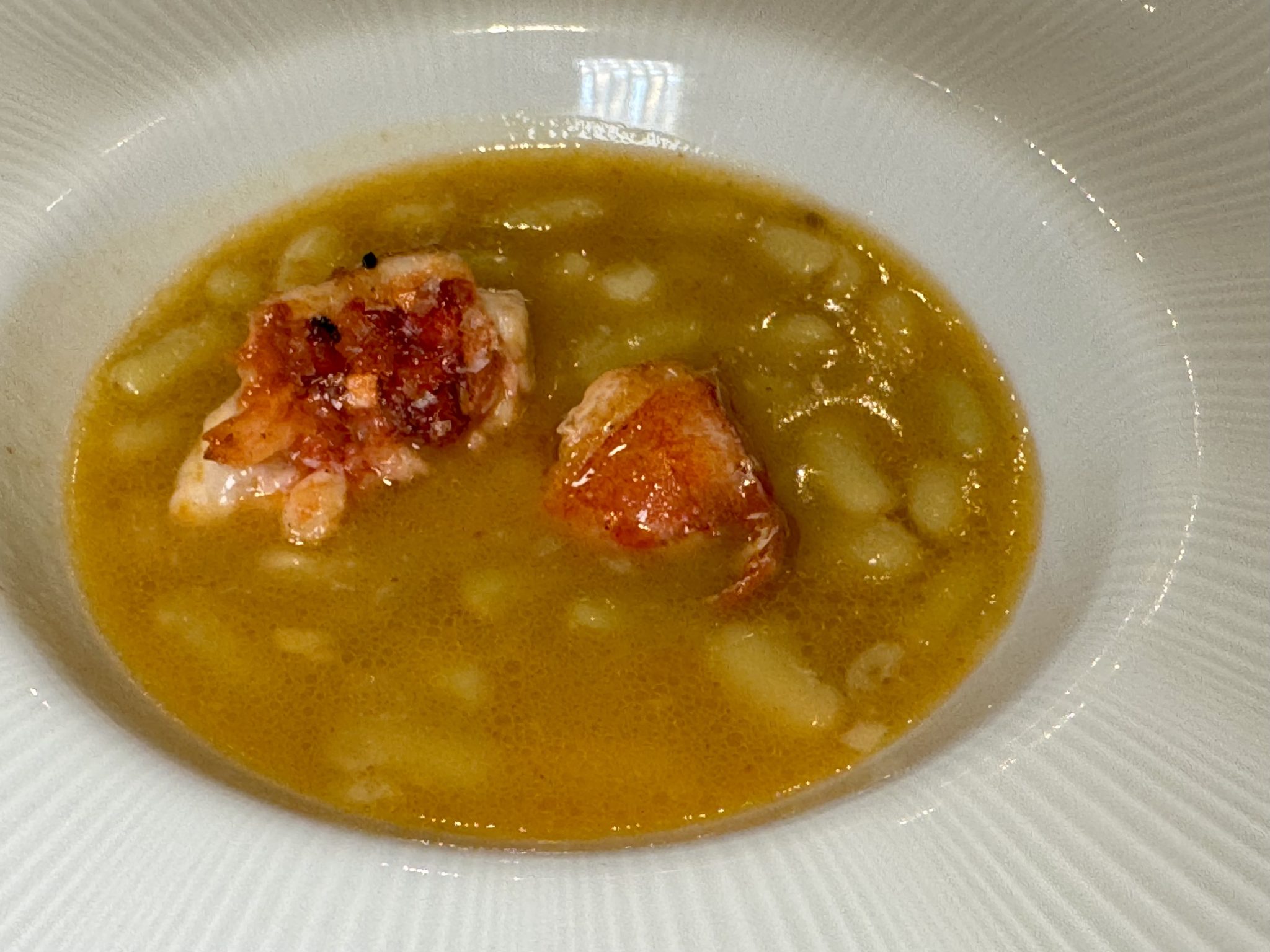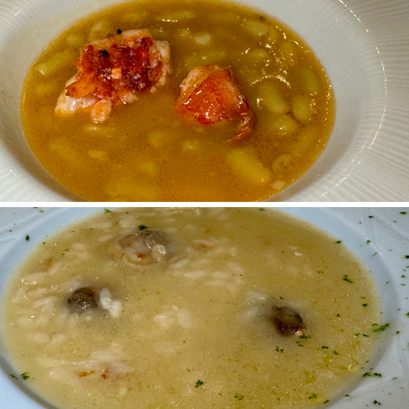 1.- Verdinas con bogavante. 2.- Sopa de arroz con almejas