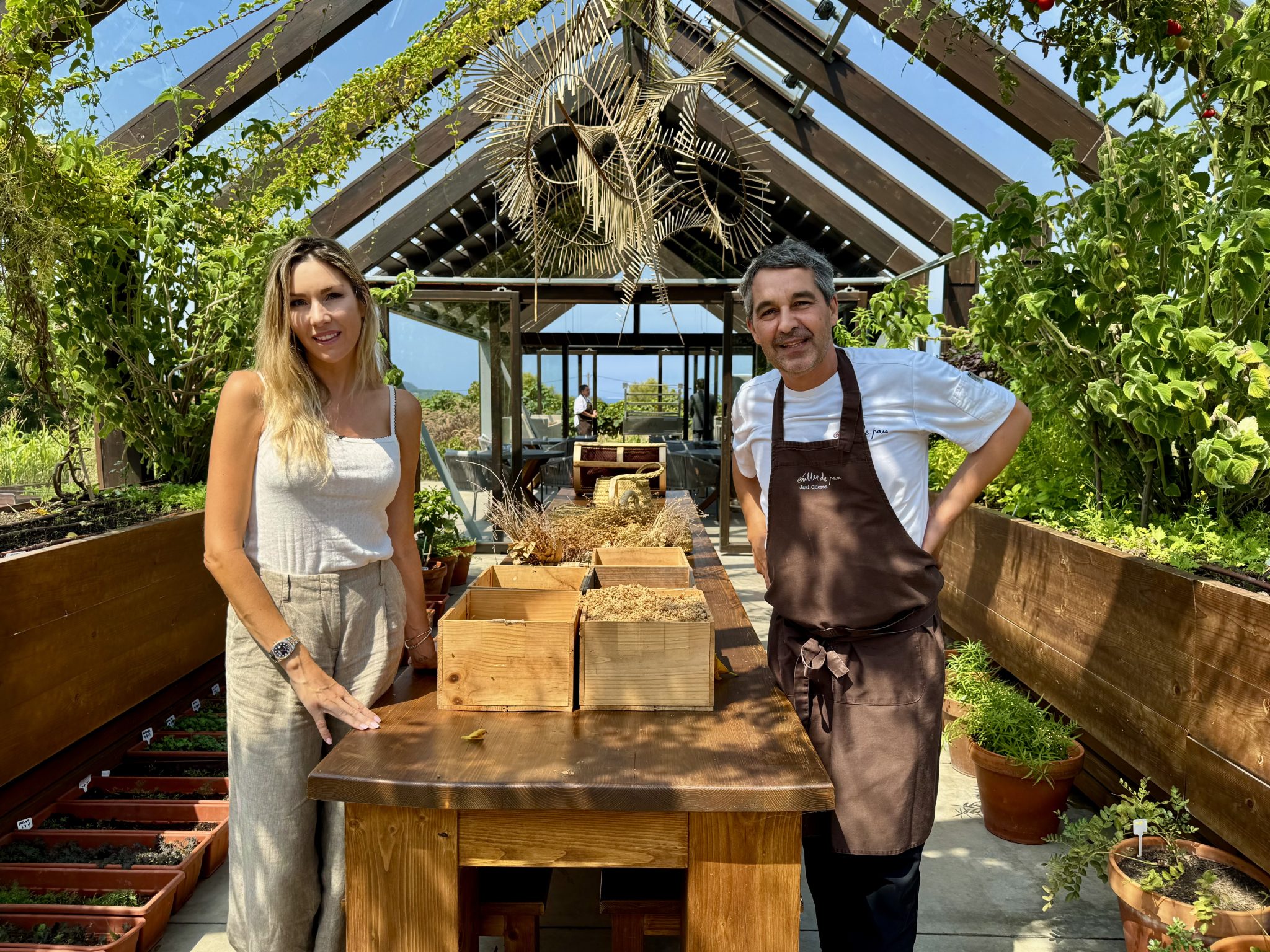 Un lugar donde cocineros y becarios se atienen a reglas de comportamiento diferentes. “Lo difícil ha sido conectar nuestros equipos de huerta y de cocina. Por costumbre, los profesionales aguardamos a que nos lleguen los productos. En Culler de Pau (O Grove) hemos roto las barreras. El gesto de recolectar las plantas nos ayuda a entenderlas. La huerta forma parte de nuestra cocina, algo excitante, una herramienta de aprendizaje. A su vez, hemos modificado ciertas actitudes. El hábito de tirar la basura lo hemos transformado en el rito del compostaje”, prosigue Olleros. “Al convertir los desperdicios en hummus generamos conciencia, nos compromete a ser más responsables”.