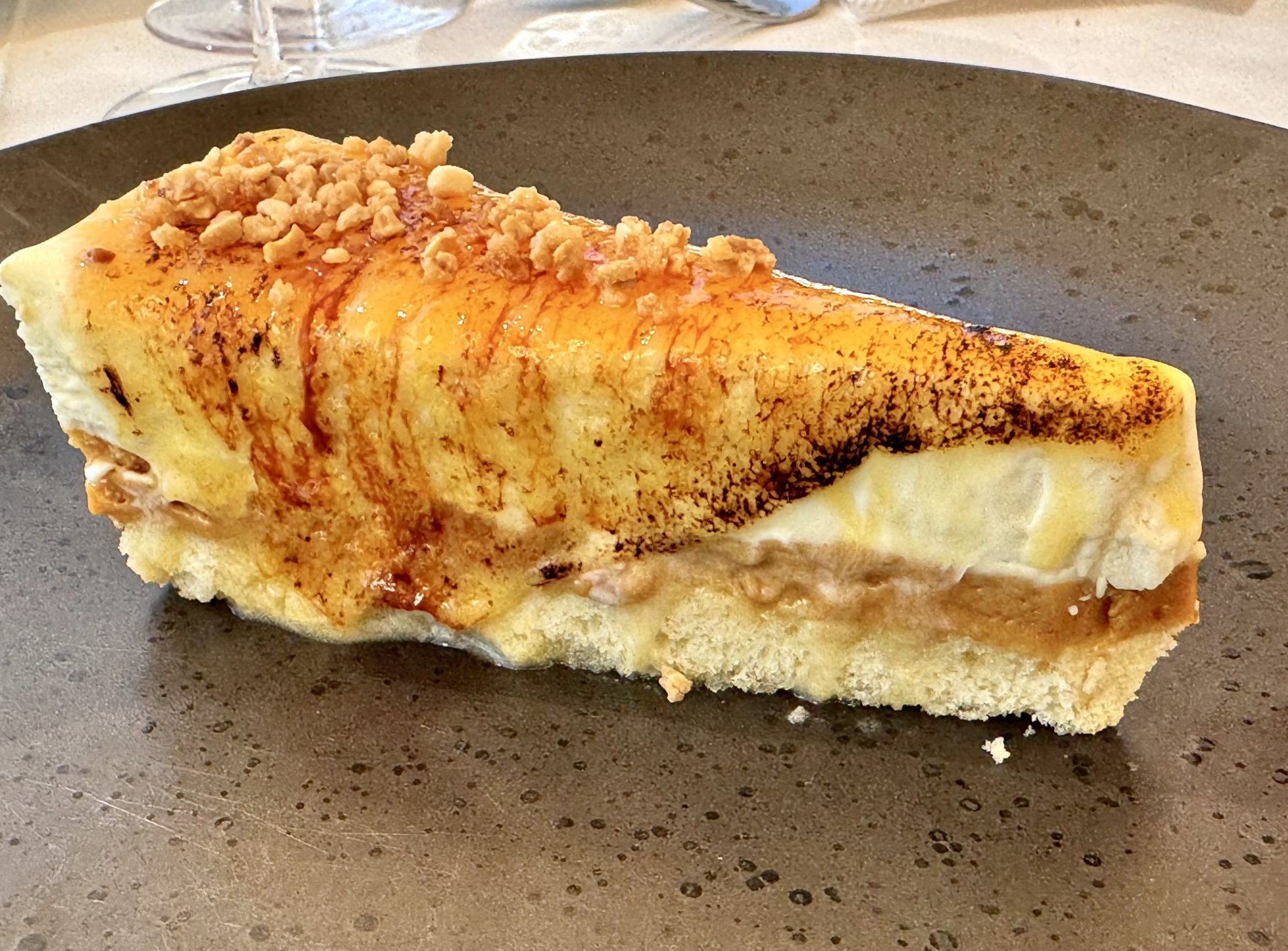 En conjunto, un balance positivo que alcanza al momento dulce. Apartado con notables inquietudes ilustrado con versiones de tartas clásicas y dulces conocidos. Magnifica la tarta helada al whisky Talisker a pesar de que la potencia del prestigioso destilado apaga en parte los sabores del resto, y muy golosa su versión del banoffee algo sobrado de merengue. Desmerece el pan, pero la bodega y el café mantienen el pulso.