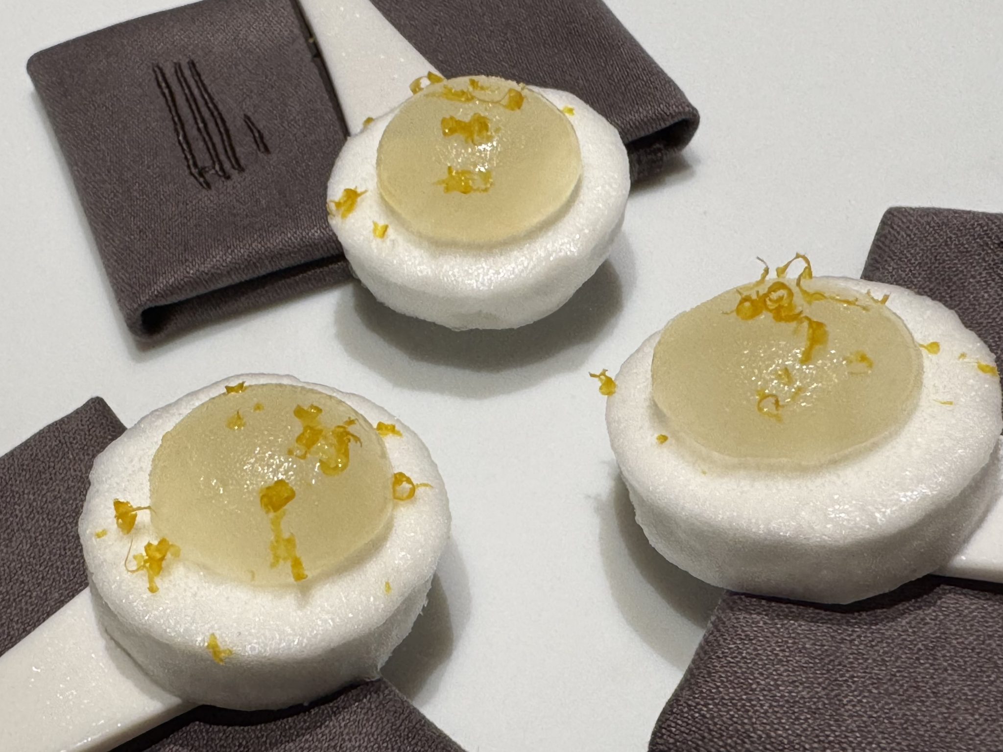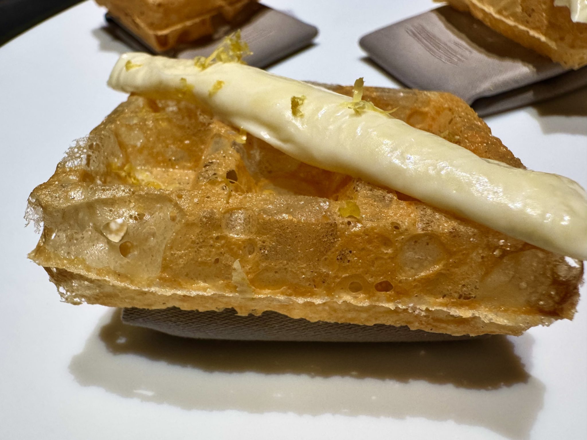 Y en el entreacto, un bocado etéreo del desaparecido Tickets: airwaffle de parmesano con rulo de yuba (piel de leche). O lo que es igual, la huella de El Bulli en efervescencia pura. “Este snack constituye un punto de inflexión, pasamos del mundo cítrico al entorno umami con sabores más potentes y nuevas texturas”, nos advirtió de nuevo Vidal.