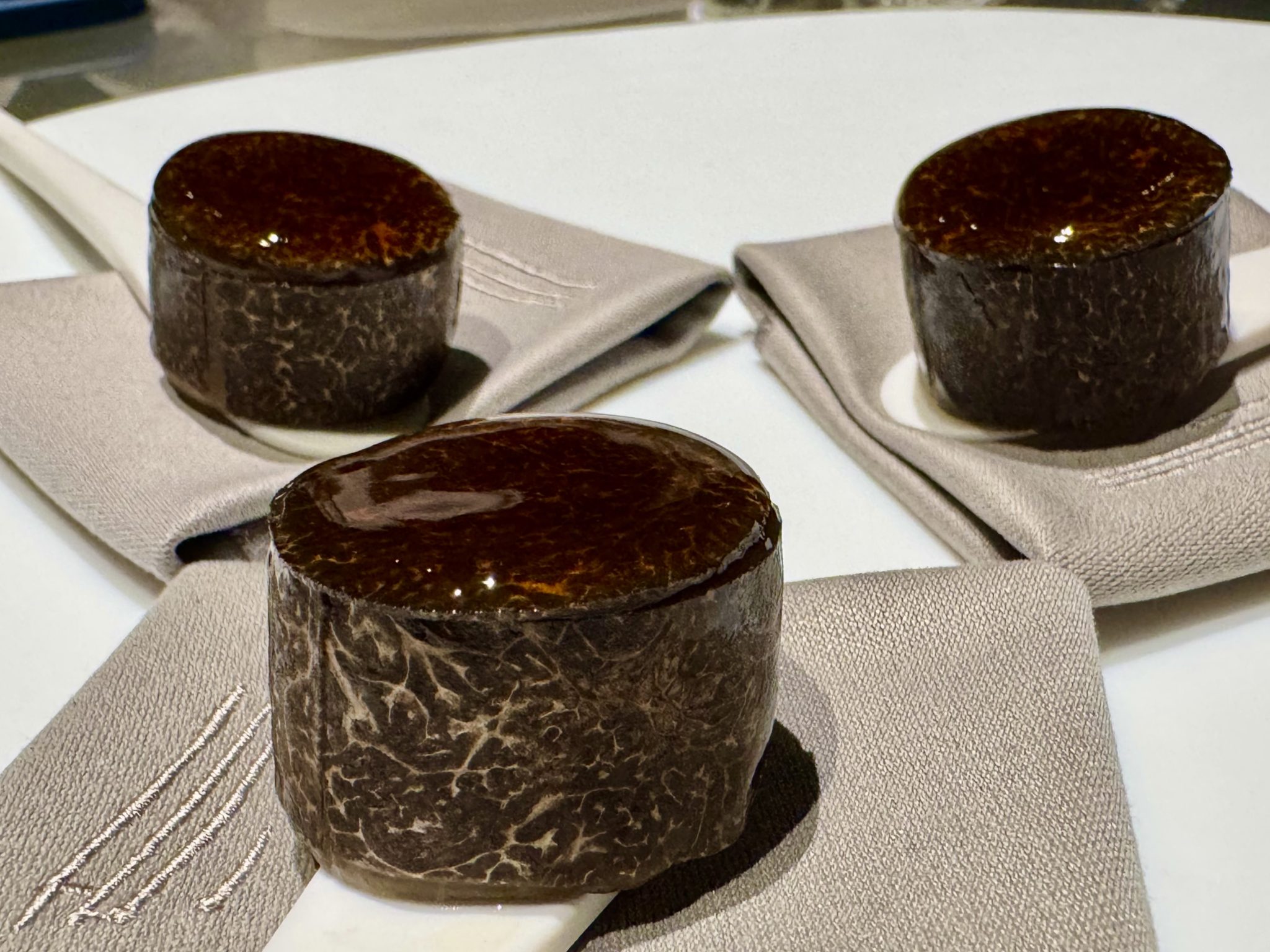 El punto final lo puso el bogavante azul gallego a la brasa curado en grasa de chuleta madurada, jugoso y de regusto cárnico, antesala del momento dulce y resumen de una cocina que maneja productos de enorme calidad. Despedida que llegó acompañada de bocados refrescantes –naranja sanguina en distintas técnicas; gelatina de naranja sanguina; empanadilla de kiwi y fresa; chocolate balsámico— en los que asomaron gelatinas, espumas y deshidratados con la elegancia que caracteriza a Adrià, uno de los mejores pasteleros del mundo.