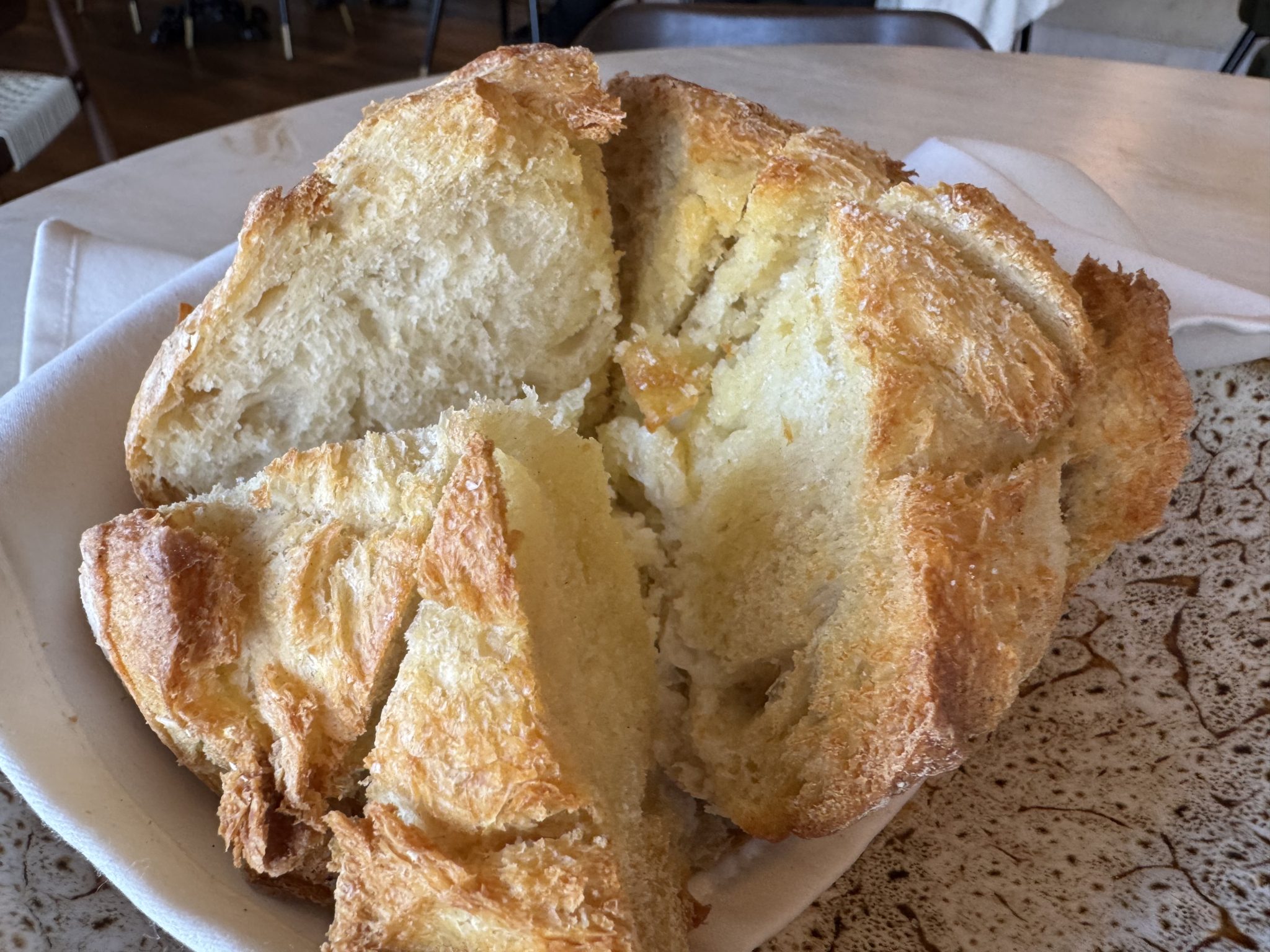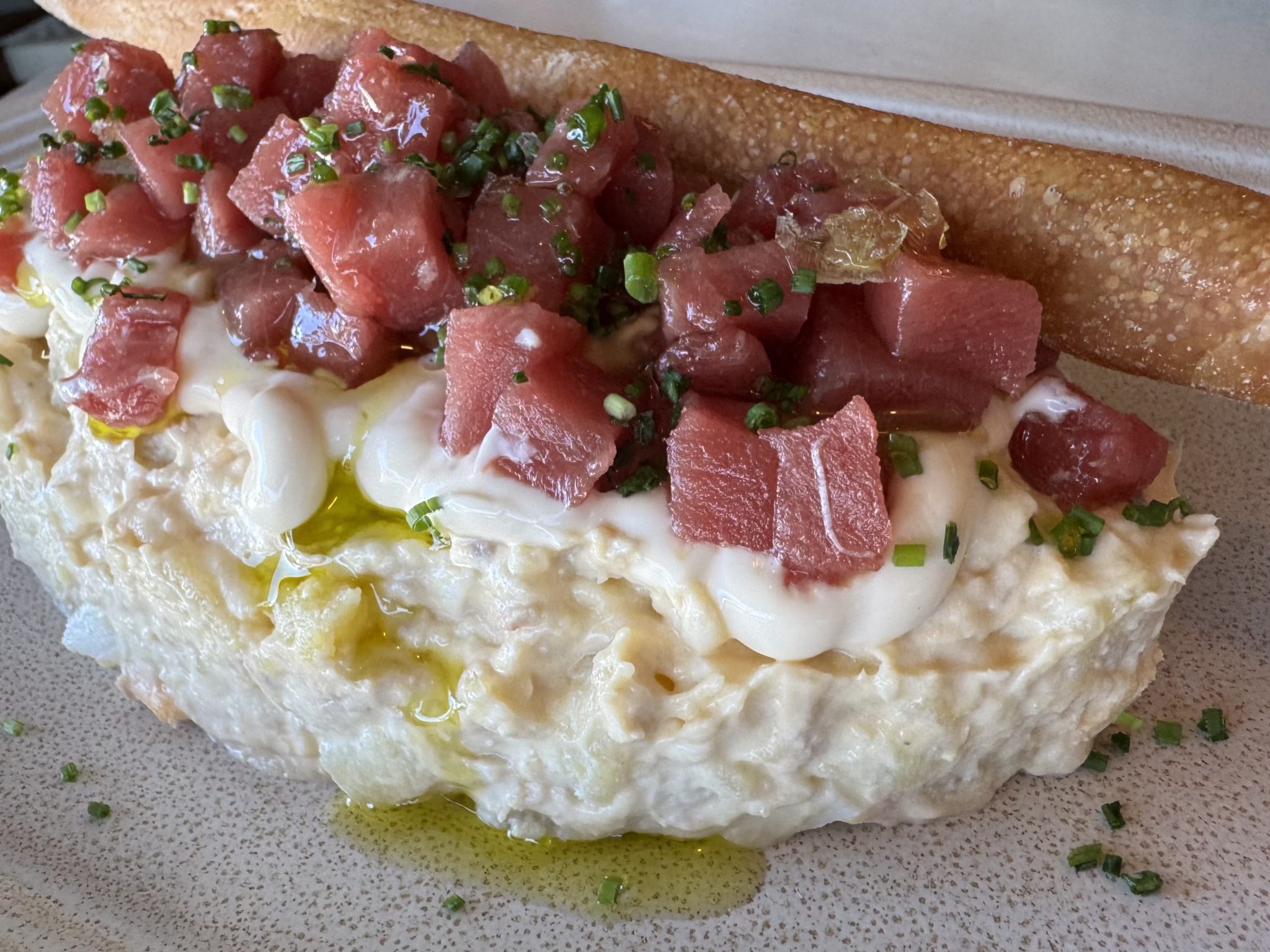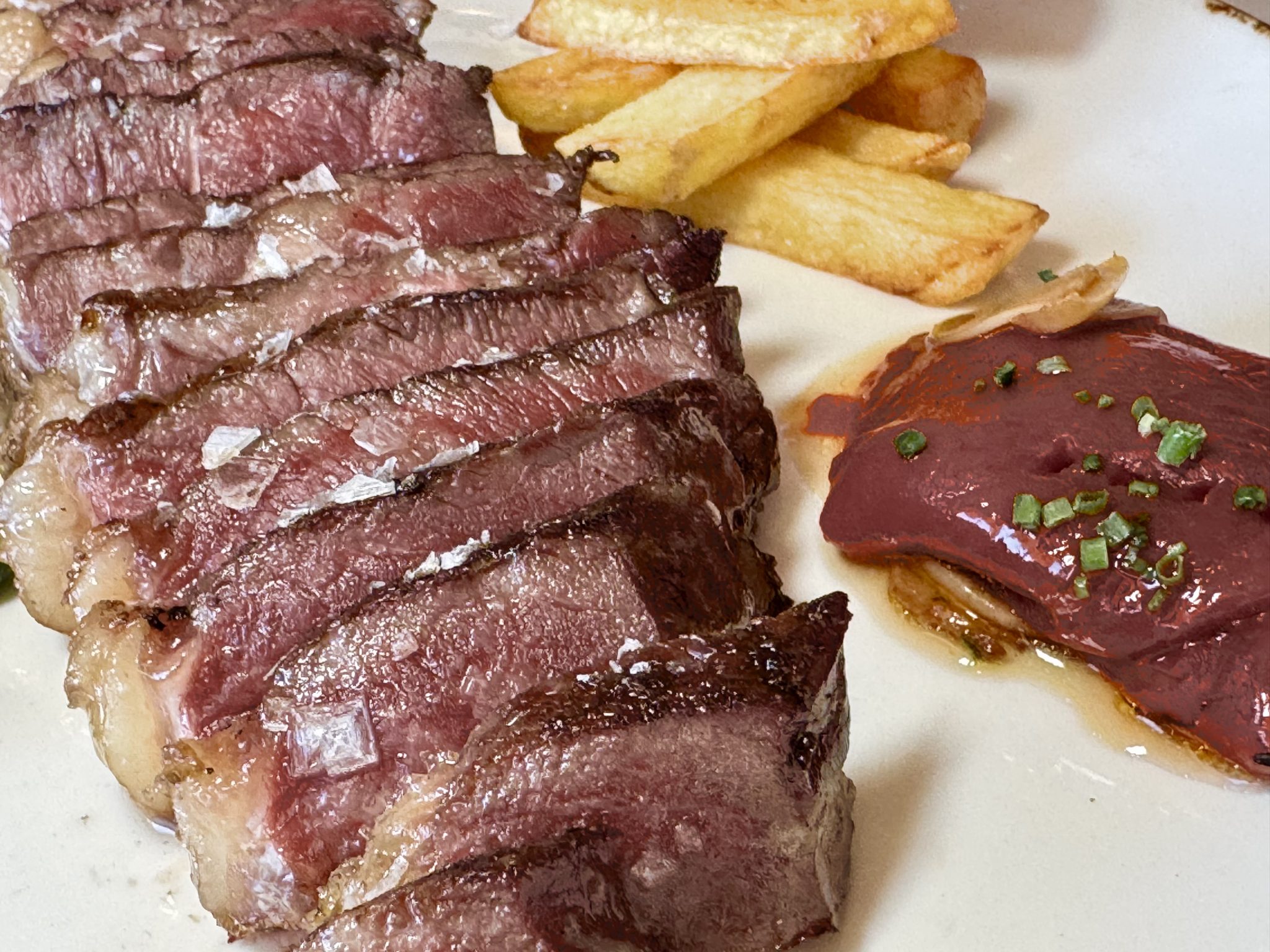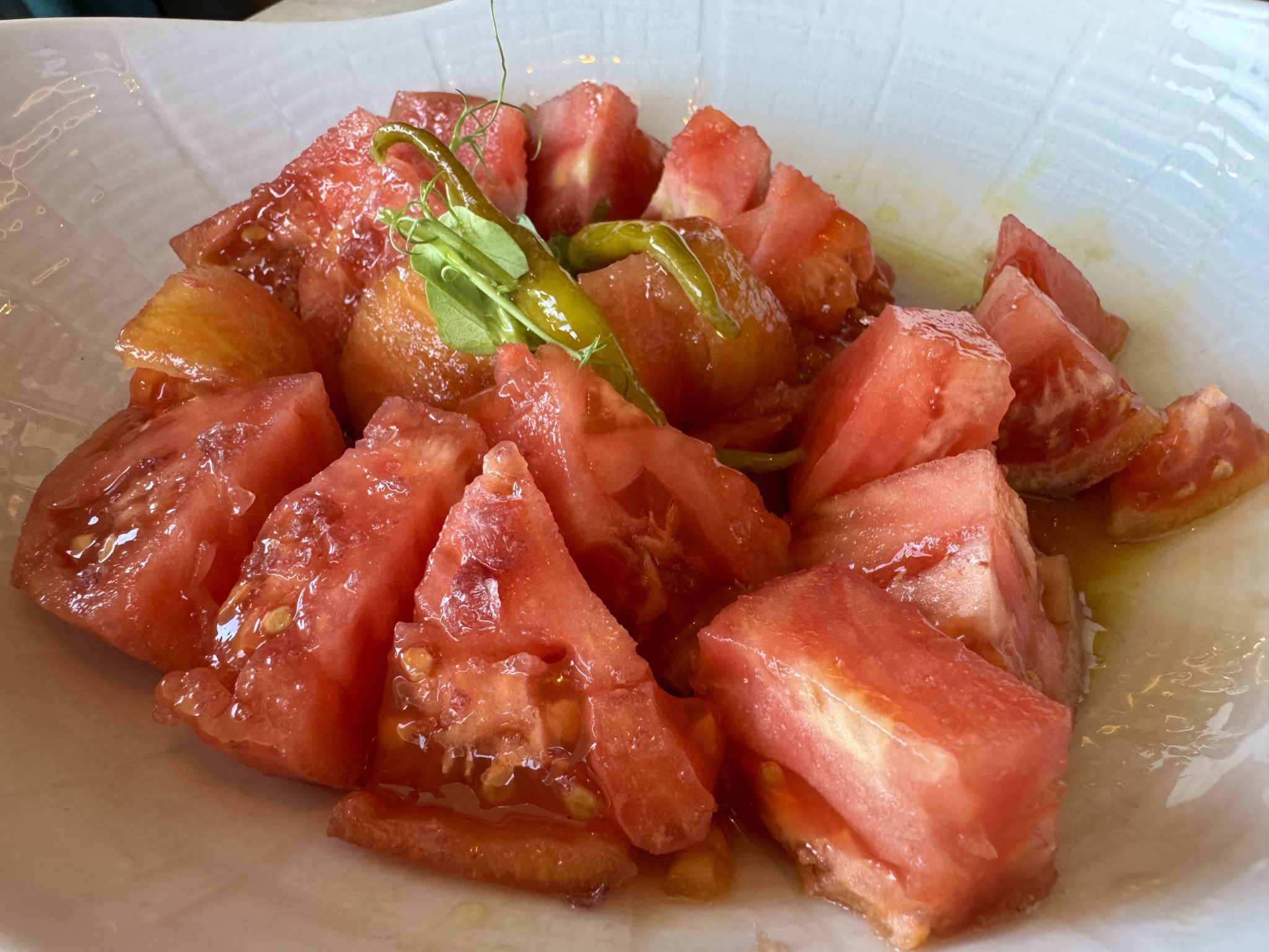 Como detalle de sensibilidad la hogaza con cortes en cruz que llega a la mesa templada y engrasada con pellizcos de mantequilla leonesa. Excelente. La mejor compañía del llamado entrecó de tomate, una pieza gruesa que disimula su insipidez por efecto del aliño. No se quedan atrás las croquetas de jamón ibérico, más que notables. ¿A cuento de qué esa manía tan extendida de cubrirlas con velos de papada curada que no les aportan nada? Tampoco desmerece la ensaladilla, cubierta por taquitos de atún crudo.