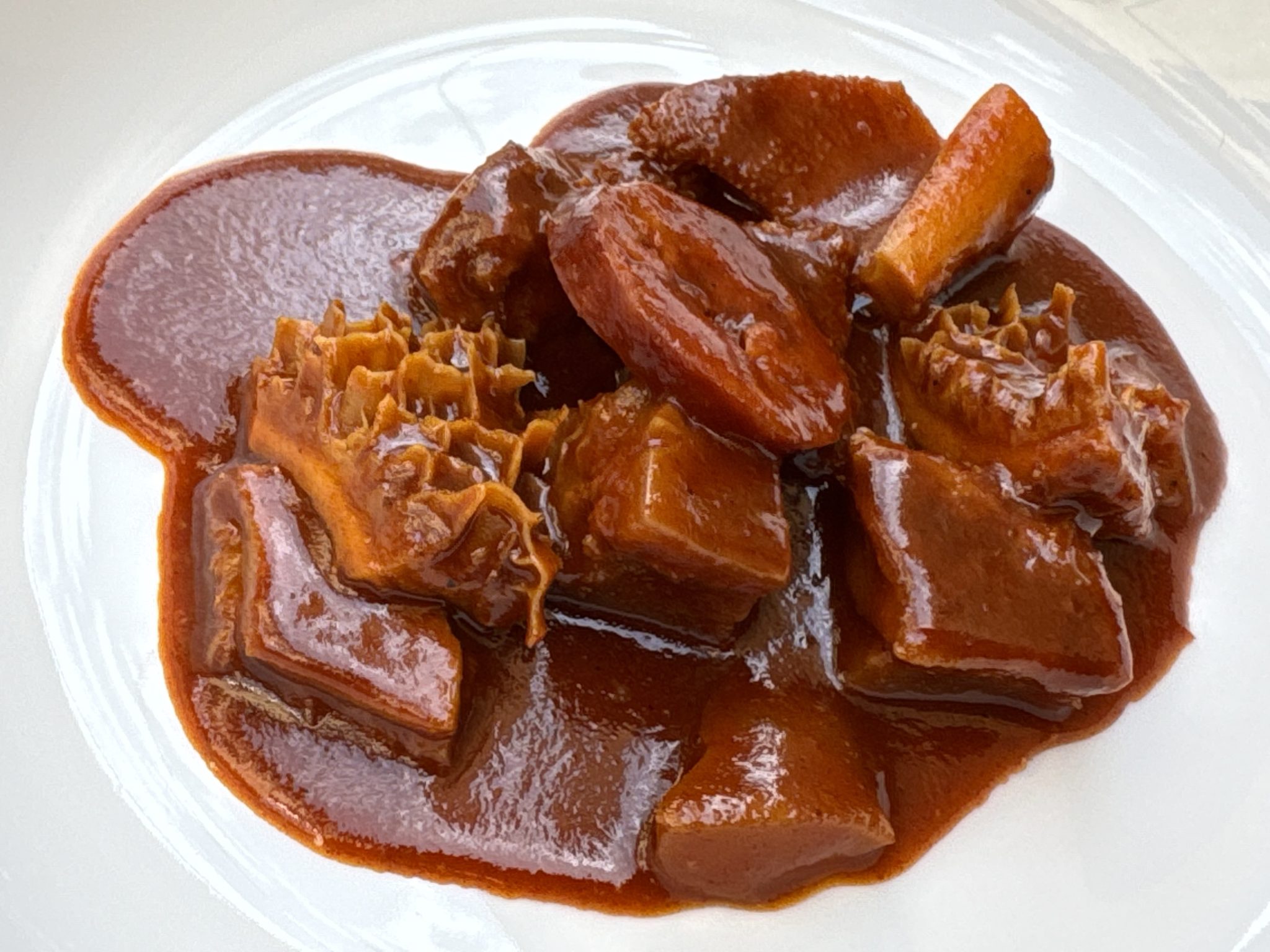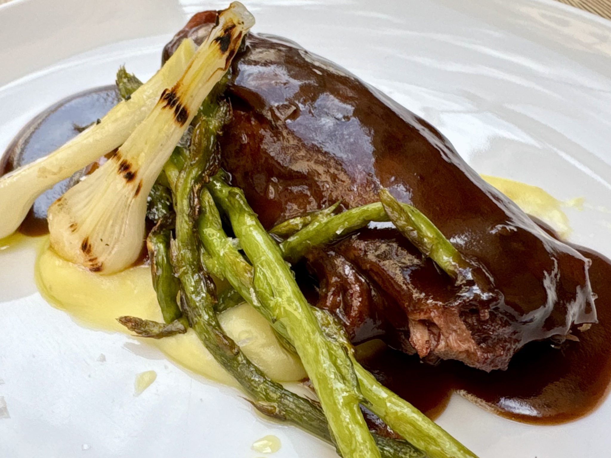 Con los platos de más envergadura sale a relucir su manejo con las carnes silvestres. Piezas que someten a marinados y a cocciones lentas para suavizar su intensidad y bravura. Oficio que ratifica el jarrete de jabalí con puré de patatas. Y las albóndigas de muflón, orladas por una salsa de alta escuela. O la codorniz en escabeche, donde el ave se presenta cubierta por la salsa ligada. No menos recomendable que el lomo de ciervo a la brasa, de sabor elegante.