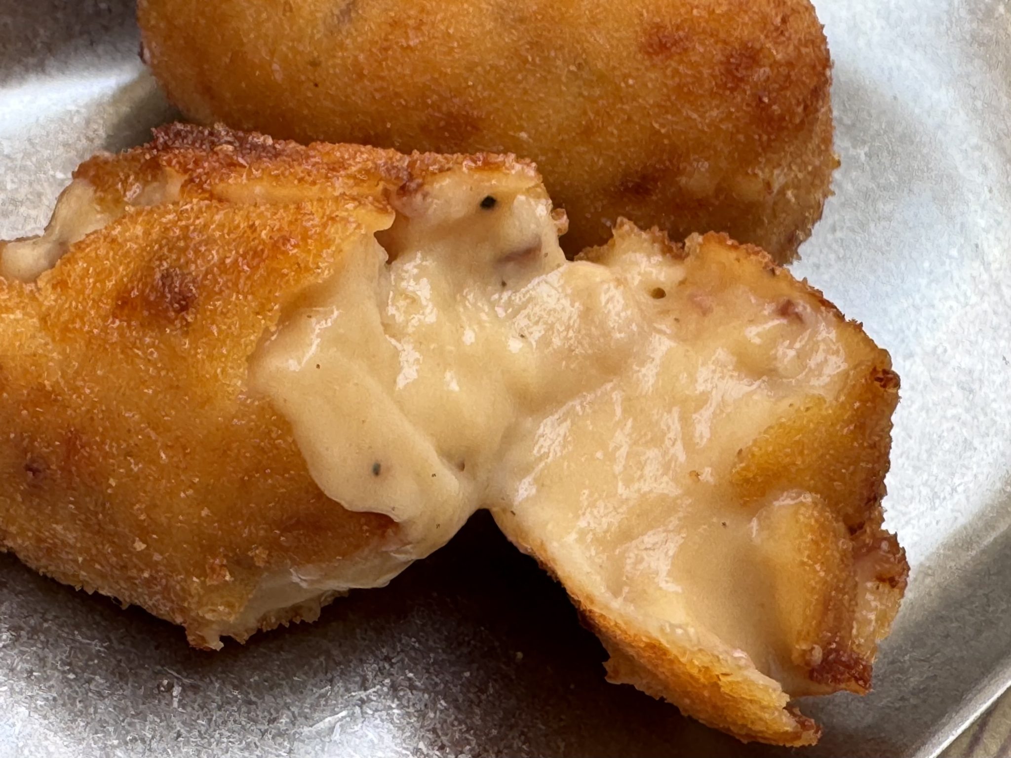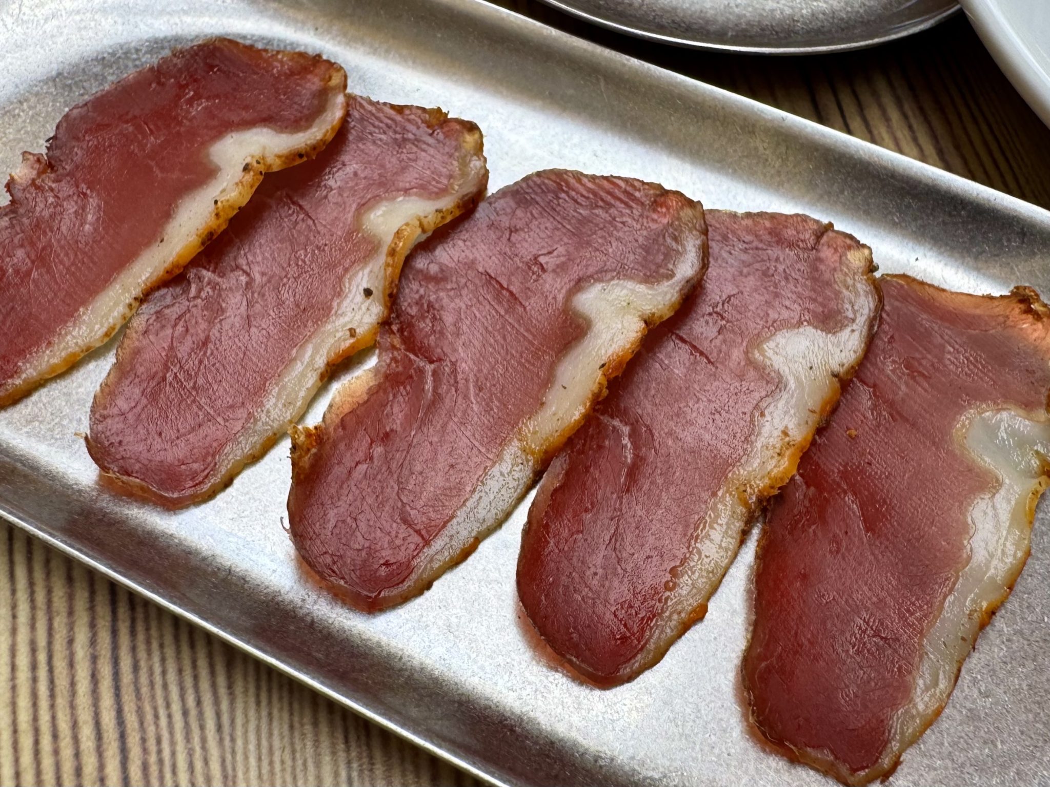 Resulta particularmente fino el caldo de la Sierra de Madrid, con regusto a monte y a caza. Lo mismo que la ensaladilla, abundante en encurtidos. O las croquetas de jamón, de masa fluida y mordisco adictivo. Y por supuesto los fiambres de jabalí, de elaboración propia. En la lista de pinchos para picar y compartir figuran los de trucha con encurtidos y corujas, y las gildas de pato azulón donde las láminas de pechuga del ave curadas sustituyen a las anchoas en la conocida receta. Tapas recomendables que se tarifan a precios razonables.