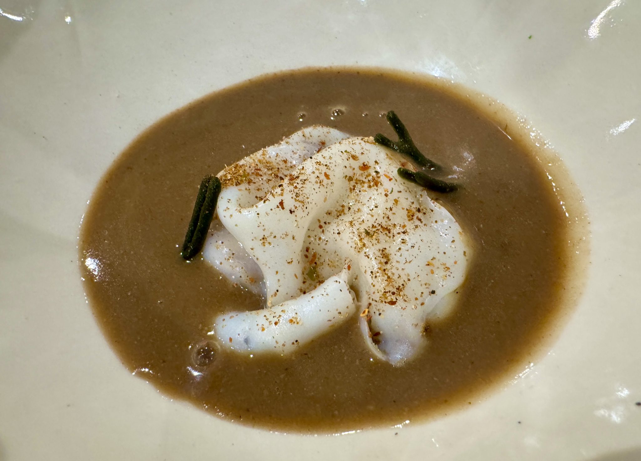 Superadas las irregularidades del nuevo emplazamiento, la cocina de David, posiblemente el cocinero más técnico de la Región de Murcia vuelve a mostrar en estos momentos la cara más completa de su fecundo recorrido. En los pases que conforman sus menús demuestra imaginación y profundos conocimientos de la despensa con la que trabaja. Repertorio de ingredientes que se desparraman por horizontes que desbordan los productos locales. De los pescados del Mar Menor, el sabroso chato murciano o el arroz de Calasparra, a la pasta de miso y el furikake japoneses, las algas gallegas o el palo cortado jerezano. Cocina de raíces, no obstante, que profundiza en la despensa vegetal y – lo más original – en el universo micológico, poco o nada habitual en su entorno, disciplina en la que se comporta como un cocinero aventajado.