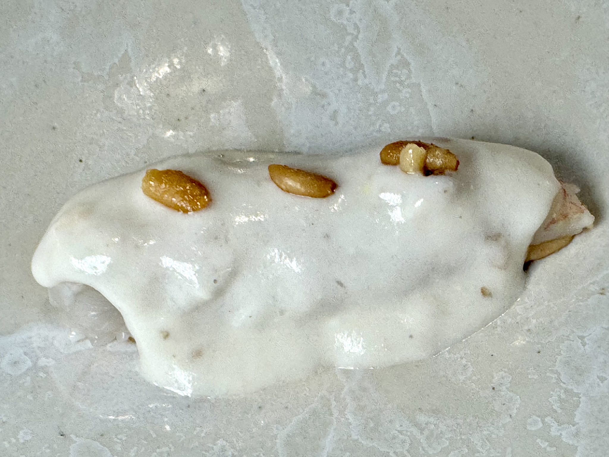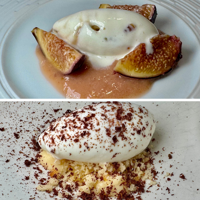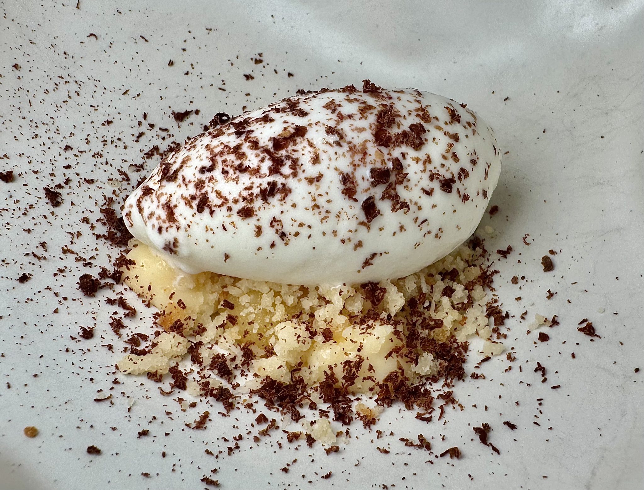 Sus dos postres no rompen con los platos salados. Incisivo su escabeche de higos con helado de queso payoyo, y notable su versión de tarta San Marcos, con corazón de atún rallado, que se inspira en la pastelería que su familia posee en el pueblo de Barbate. Con razones de peso, Juan Viu y su restaurante Mare (Cádiz) no han dicho todavía su última palabra.