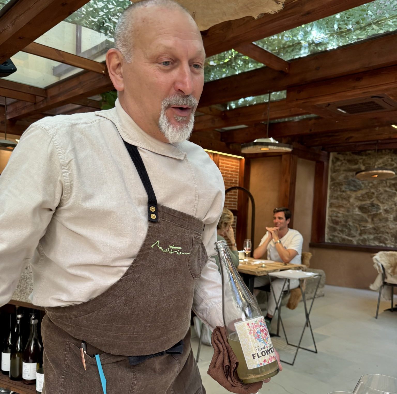 Nada parece quebrantar sus convicciones. “No pretendo que nuestros vinos estén buenos” -me comentó sonriente hace tiempo-, “me basta con que realcen los platos a los que acompañan”. Talante radical que comparte con su sumiller, el italiano Marco Masolini, inductor de propuestas extremas que no siempre satisfacen, pero que sacuden convicciones.