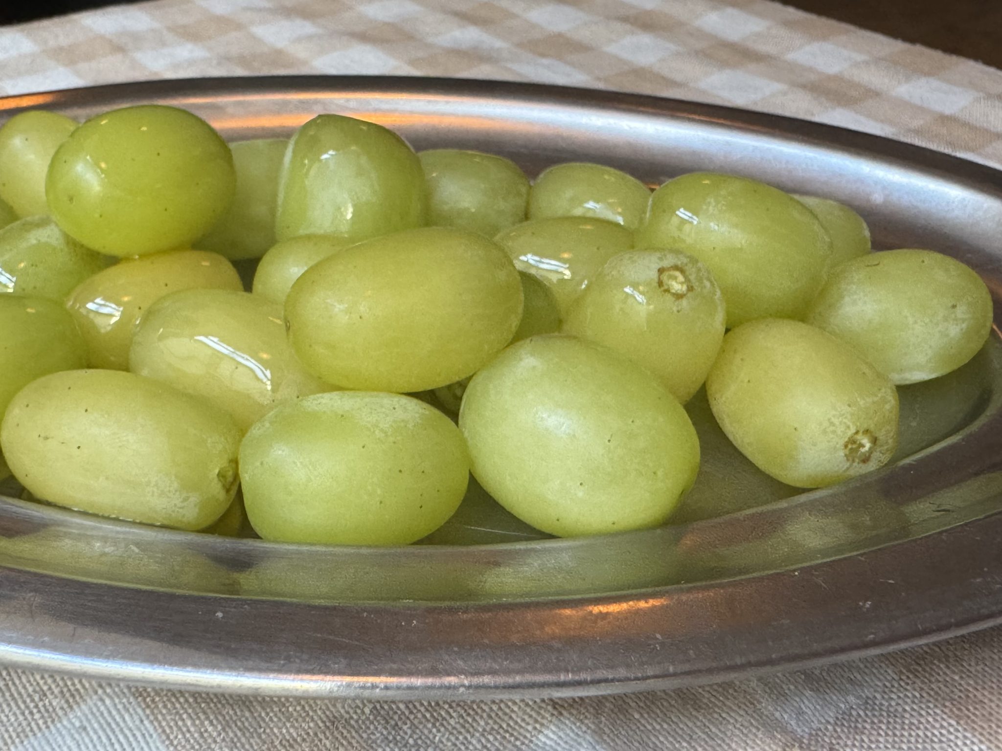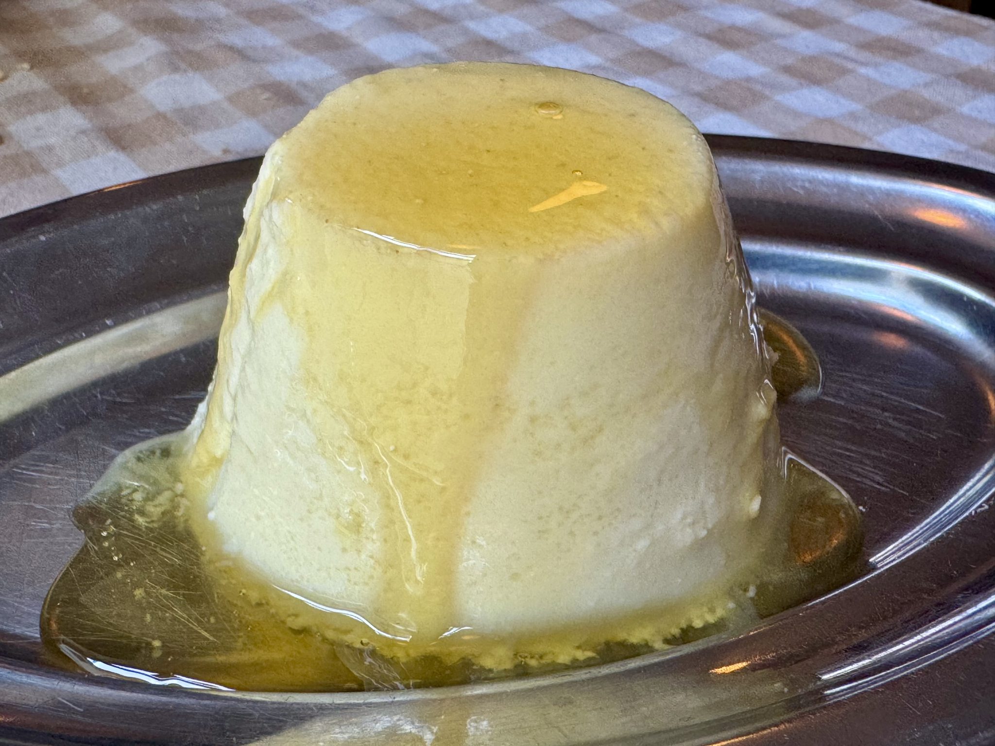 1.- Uvas aliñadas con aceite. 2- Flan de queso