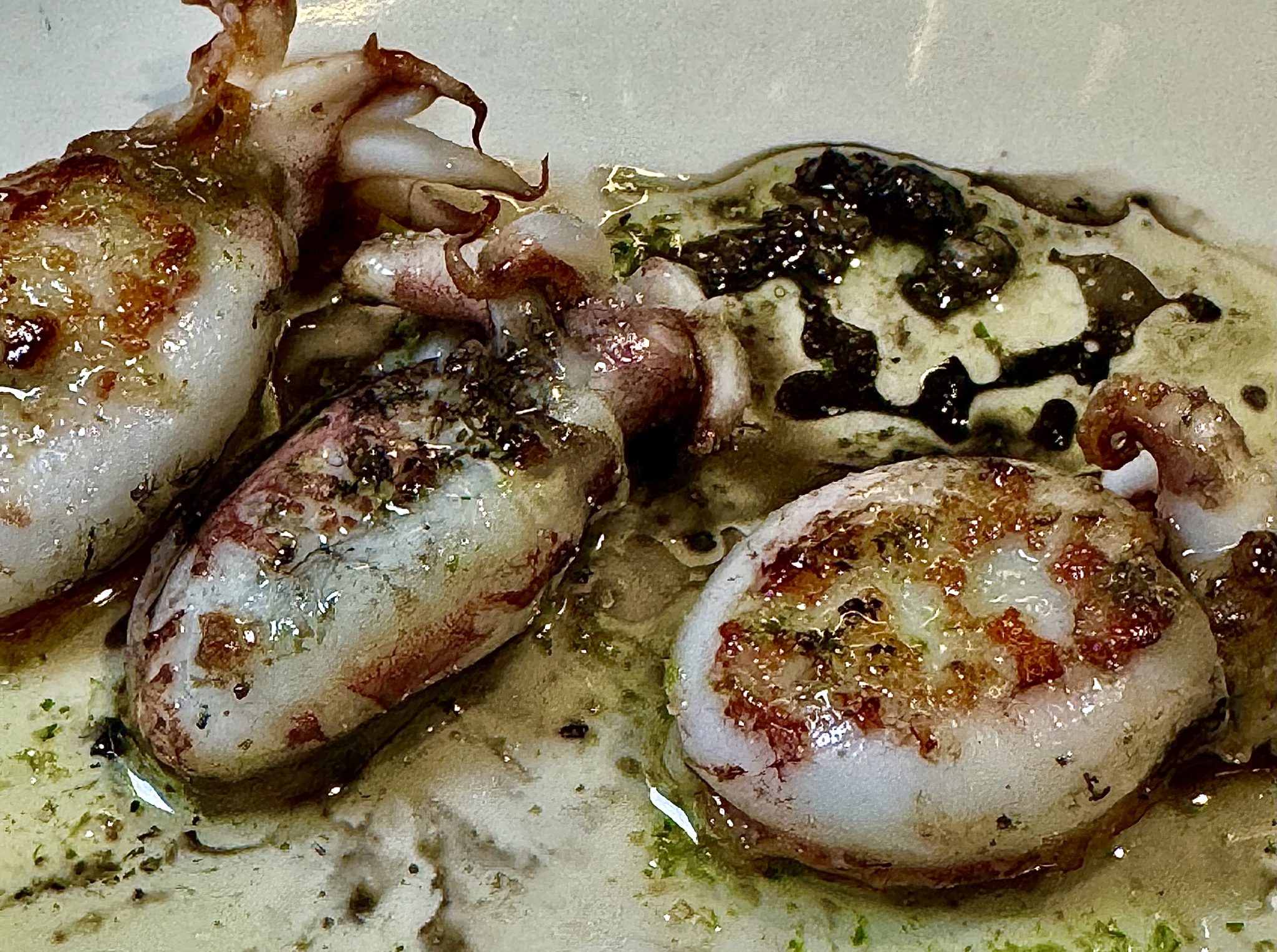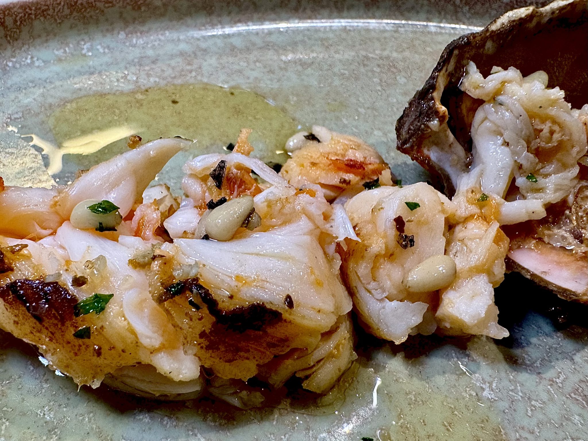 Siempre al vaivén de las subastas, los crustáceos del día sacan a relucir la mano de su cocina. Dan lo mismo las quisquillas, que las gambas rojas o, incluso la casi inexistente cigala real. A la plancha o al horno sus puntos de cocción discurren por esa delgada línea que separa lo crudo de lo cocinado. Siguen los sepionets a la plancha, impecables, y las ortiguillas de mar que reciben de Galicia, y cuyo rebozo, demasiado grueso desdibuja en parte el sabor de estos mariscos, auténticos sesos marinos, de textura meliflua, solo para iniciados.
