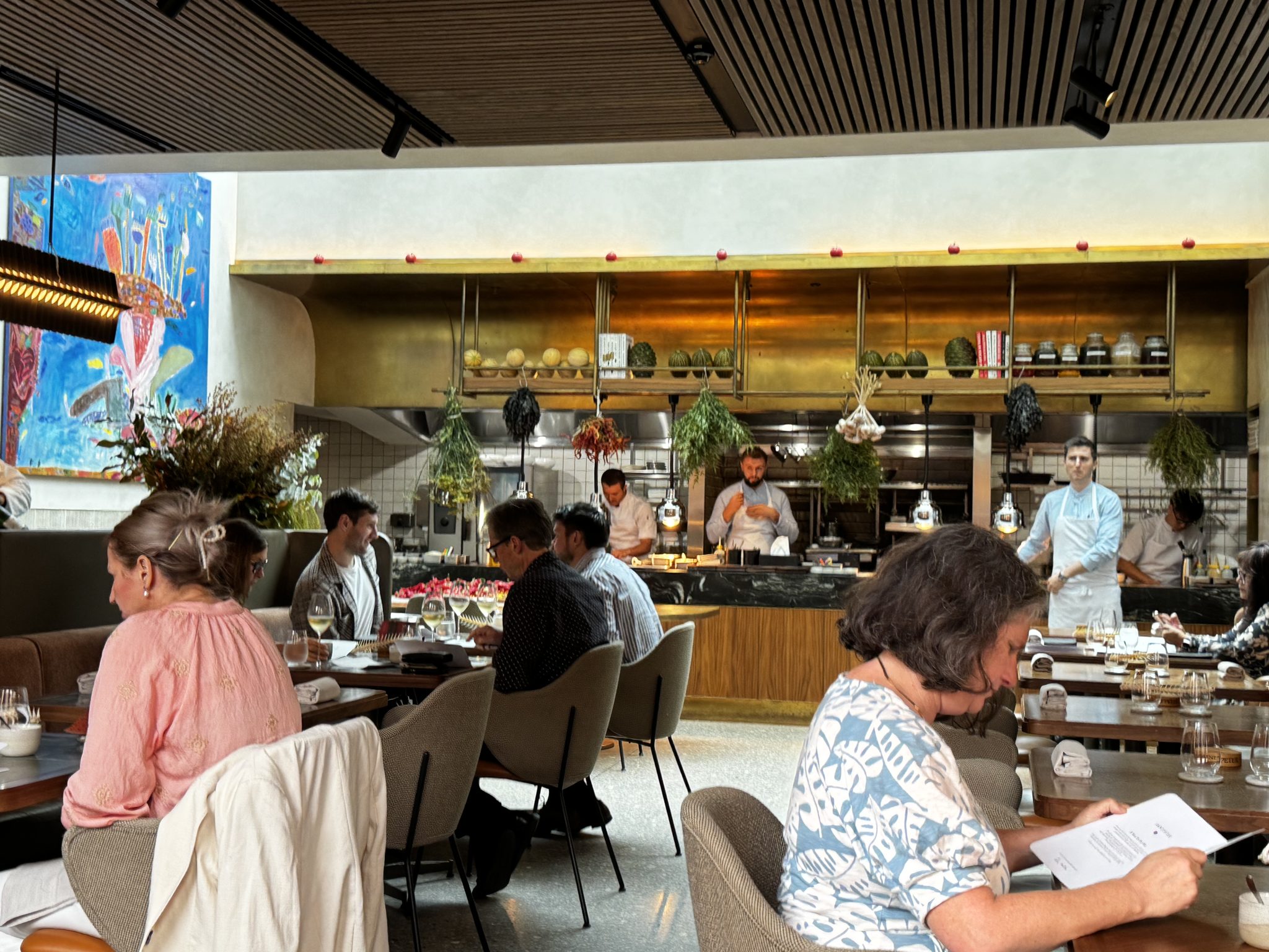 El punto final lo pone la media platija de vientre amarillo asada al carbón, con calabaza, ricotta y chile de árbol, donde los sabores grasos del pescado agradecen los contrapuntos vegetales y lácteos de los aderezos. El pan, el café y la bodega acompañan con acierto a la cocina salada. Algo mejor que los postres cumplen sin aspiraciones.