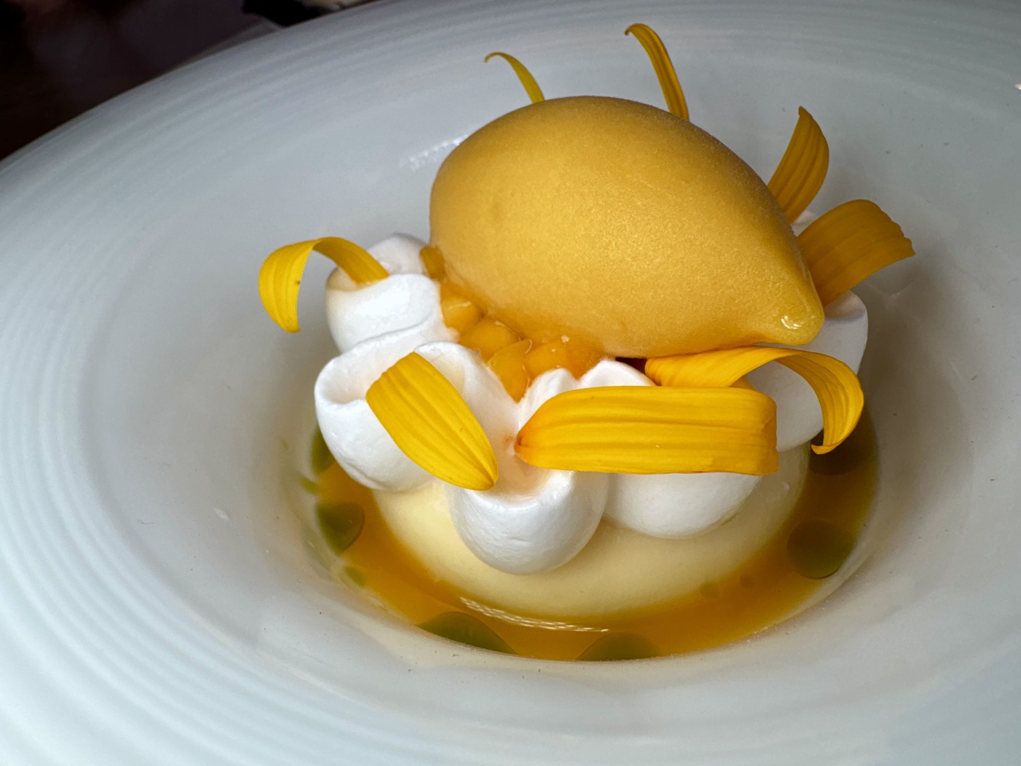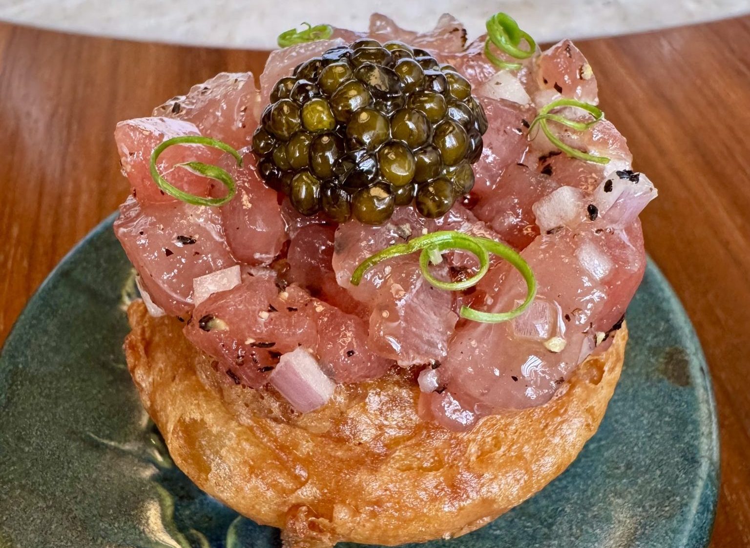En el primero de sus entrantes el tartar de atún se acompaña de un tazón de pescado que resume la filosofía de Niland. “La trucha de coral (Plectropomus leopardus), es el Ferrari de la pesca de Queensland”, afirma. “Con la harina de sus espinas elaboramos unas cintas de pasta que cocemos en el caldo de espinas del mismo pescado y cubrimos con una suave crema de cebolla, dentro de un tazón elaborado por artesanos con los deshechos de las espinas», recalca. El sentido del aprovechamiento llevado al extremo.