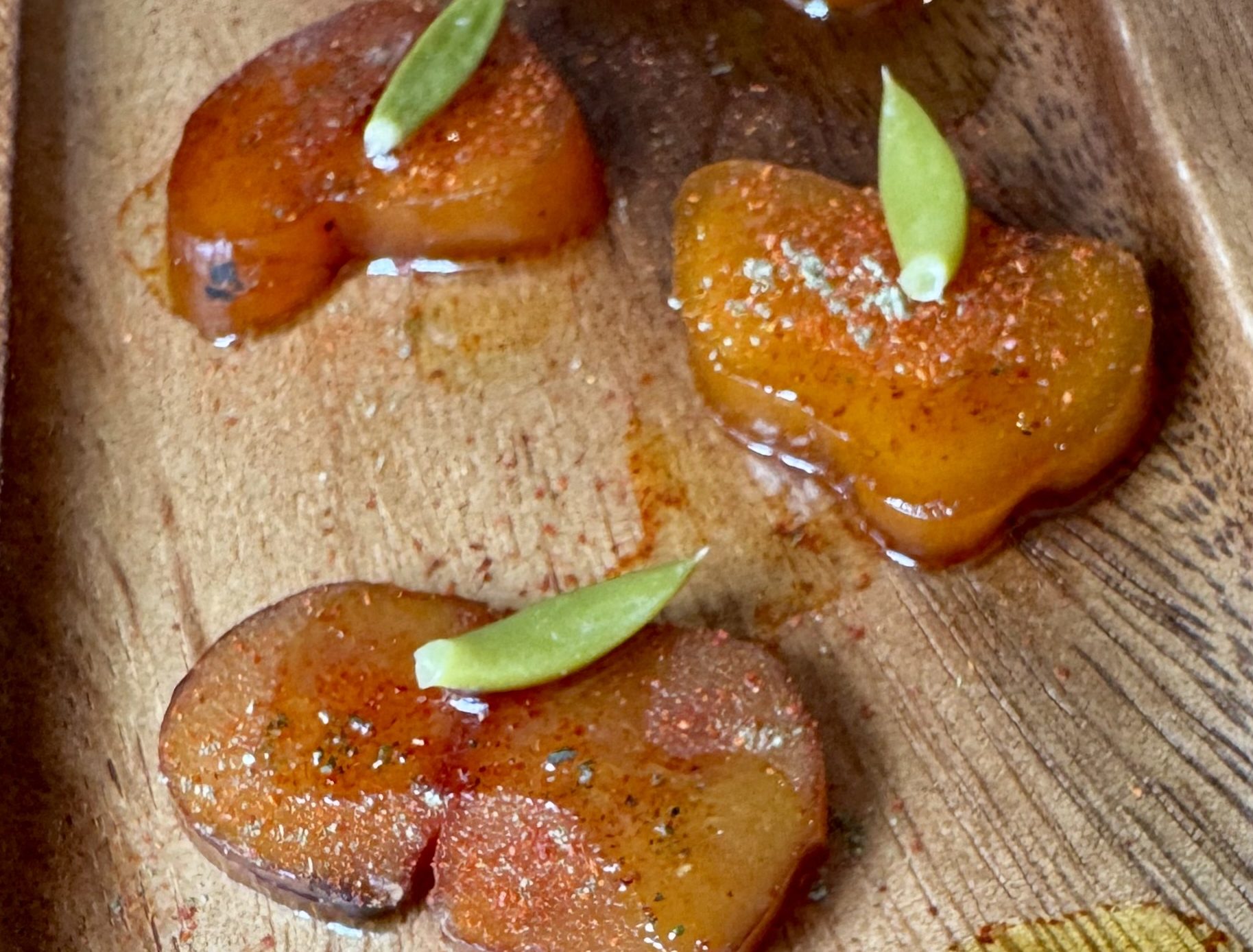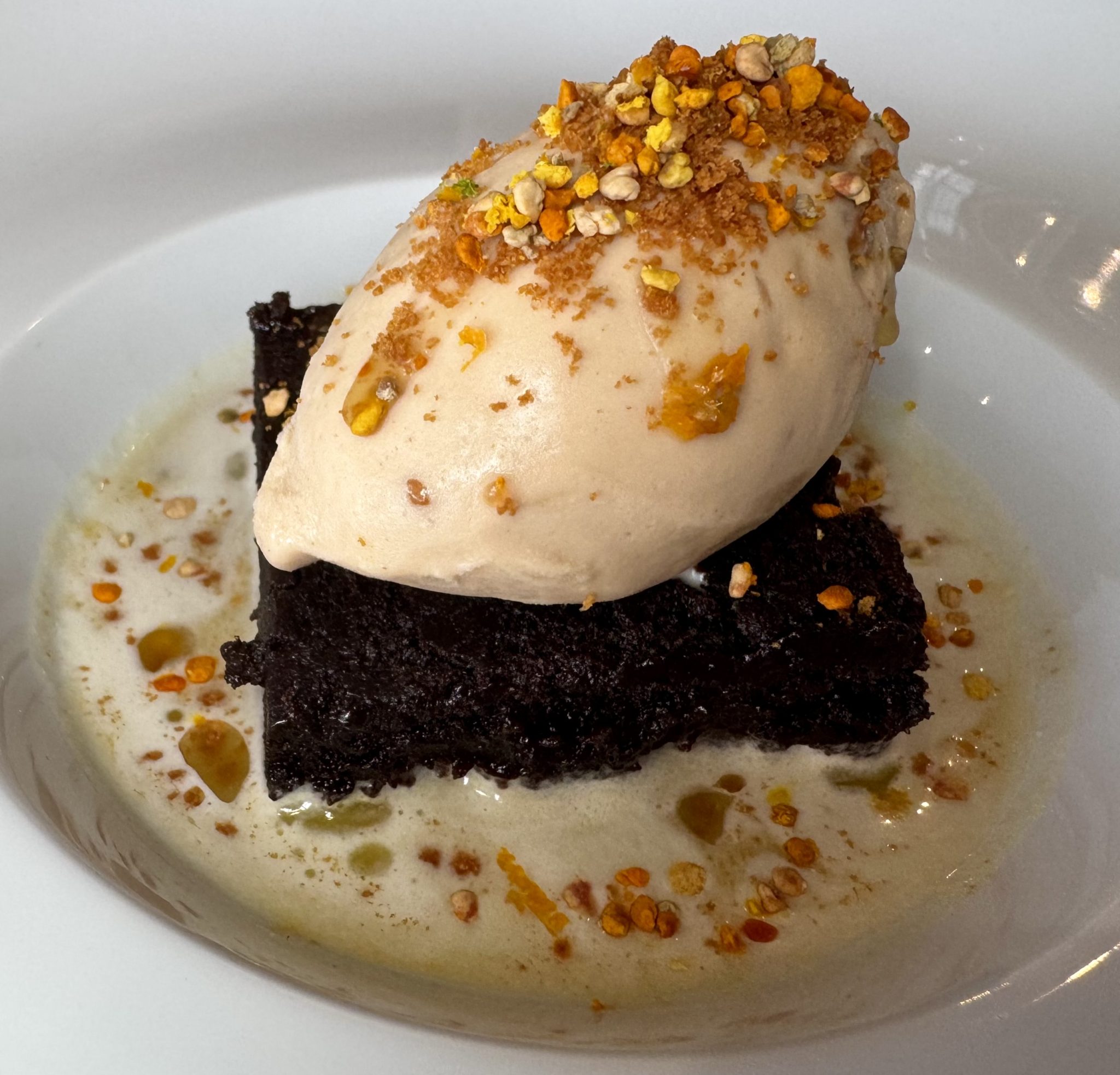 En el momento dulce, emerge un postre que resume el sentir de su cocina: bizcocho de algarrobas, sobre sopa de cítricos y helado de turrón, donde confluyen el paisaje y las tradiciones locales en un solo bocado. Un dúo de cocineros que promete.