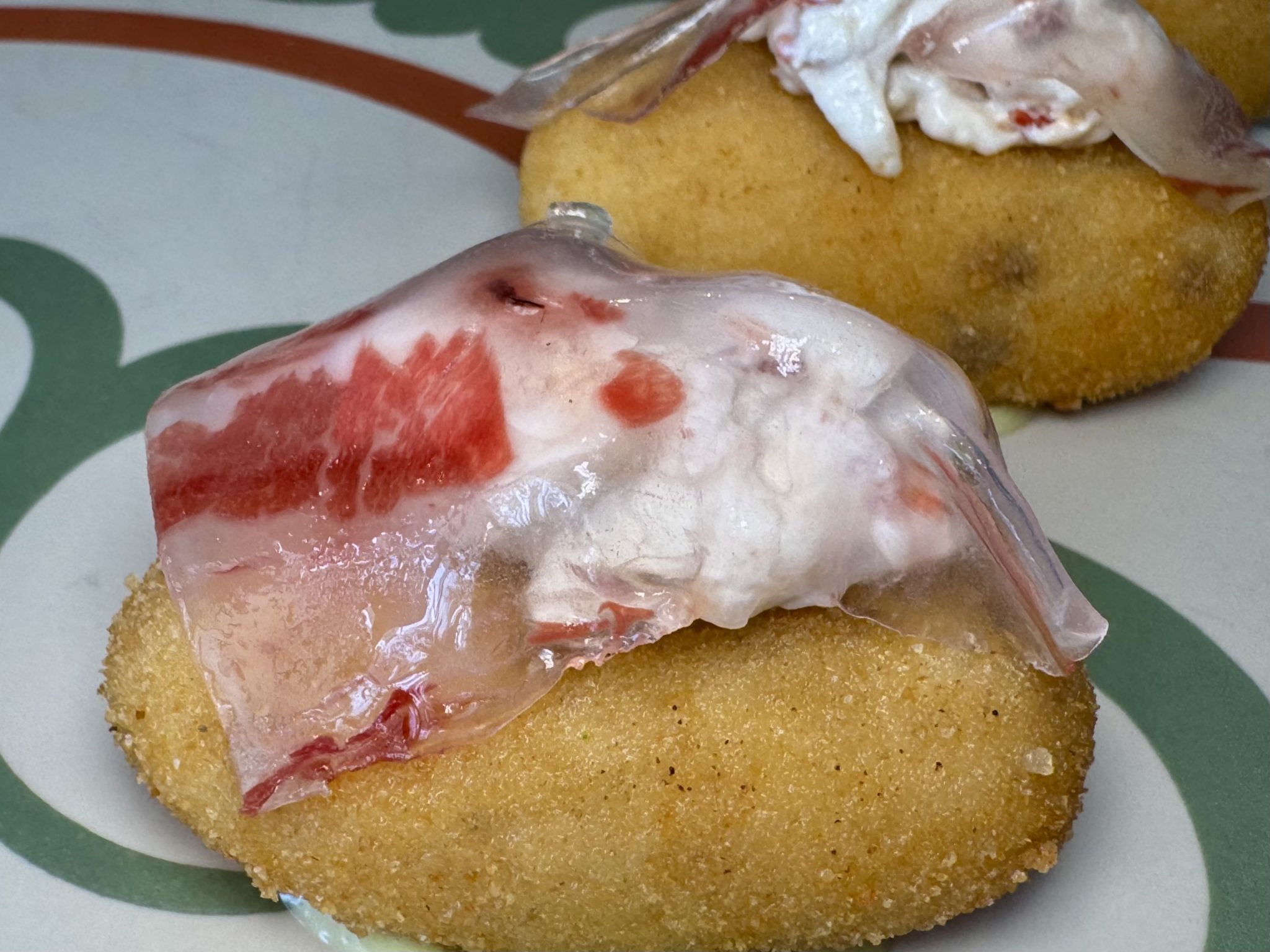 1.- Croquetas de gambas y acelgas. 2.- Croquetas de jamón
