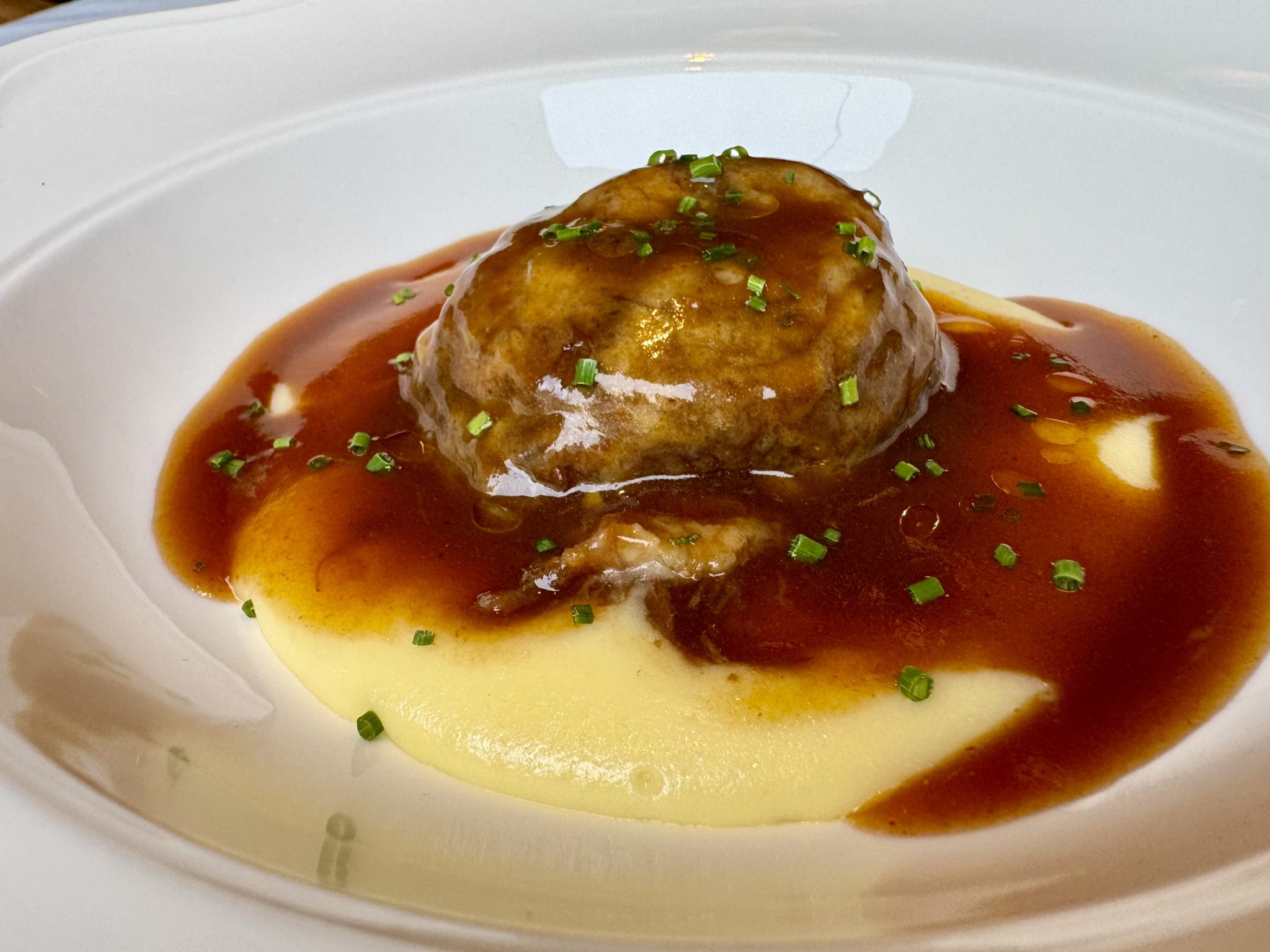 A partir de los entrantes fríos las opciones se diversifican. Resultan notables los sándwiches (bikinis) de lengua ahumada con pepinillos, y de lacón con queso San Simón da Costa; sabrosos los canelones de papada ibérica con butifarra y, tan resultón como el resto, el arroz de verduras frescas con granos morados de la variedad venere. Las pizzas, en sus dos variantes (napolitana con anchoas y tomate, y con huevo, cebolla y trufa negra rallada) finas, estilo romano, necesitan mejorar la calidad de la masa falta de entidad. Lo contrario que las albóndigas de rabo con puré de patatas, receta que acompaña a Sandro desde antaño en su trayectoria como cocinero. O la brocheta de lomo alto de black angus a la parrilla con chimichurri, sugerencia más que notable.