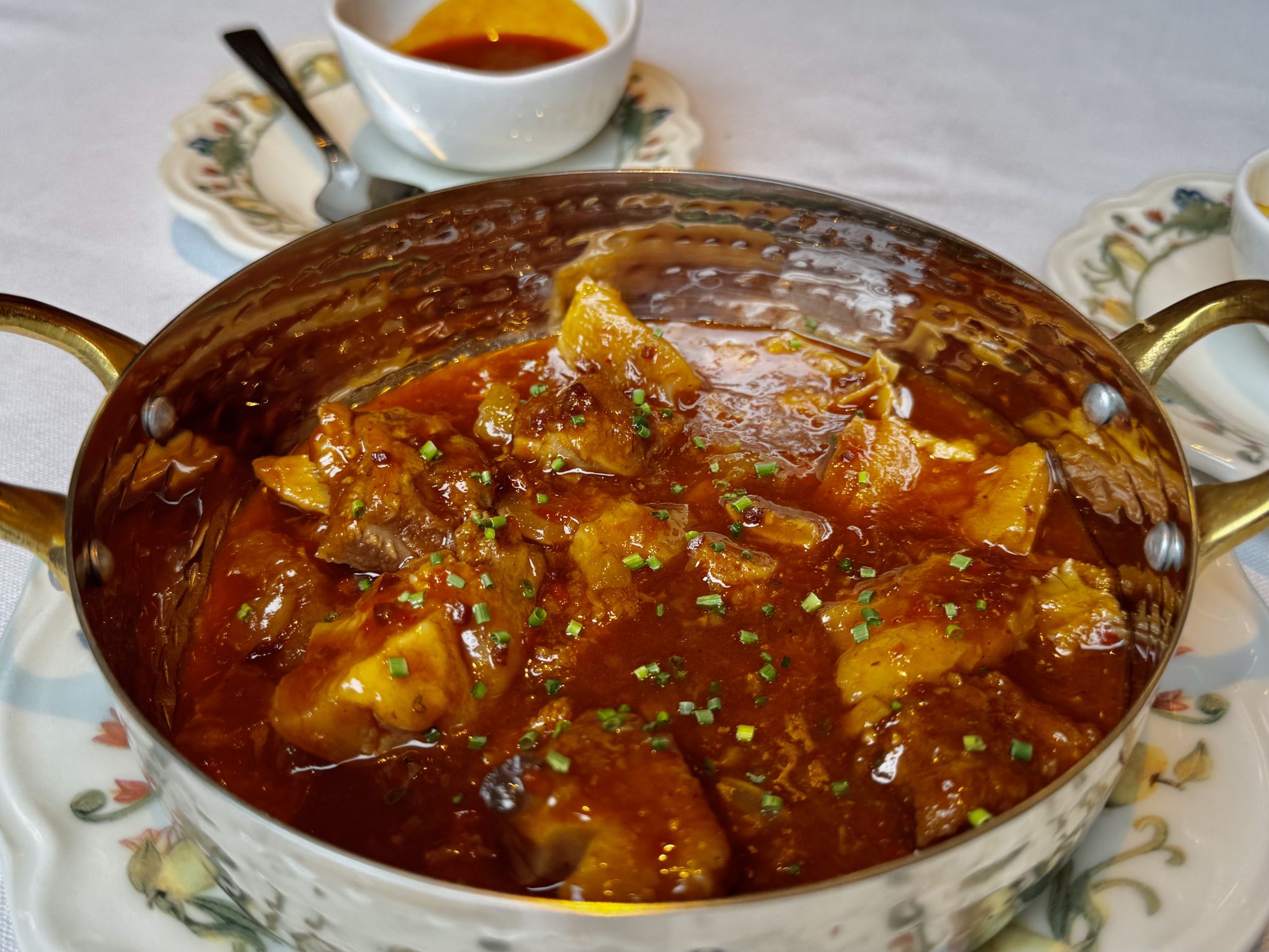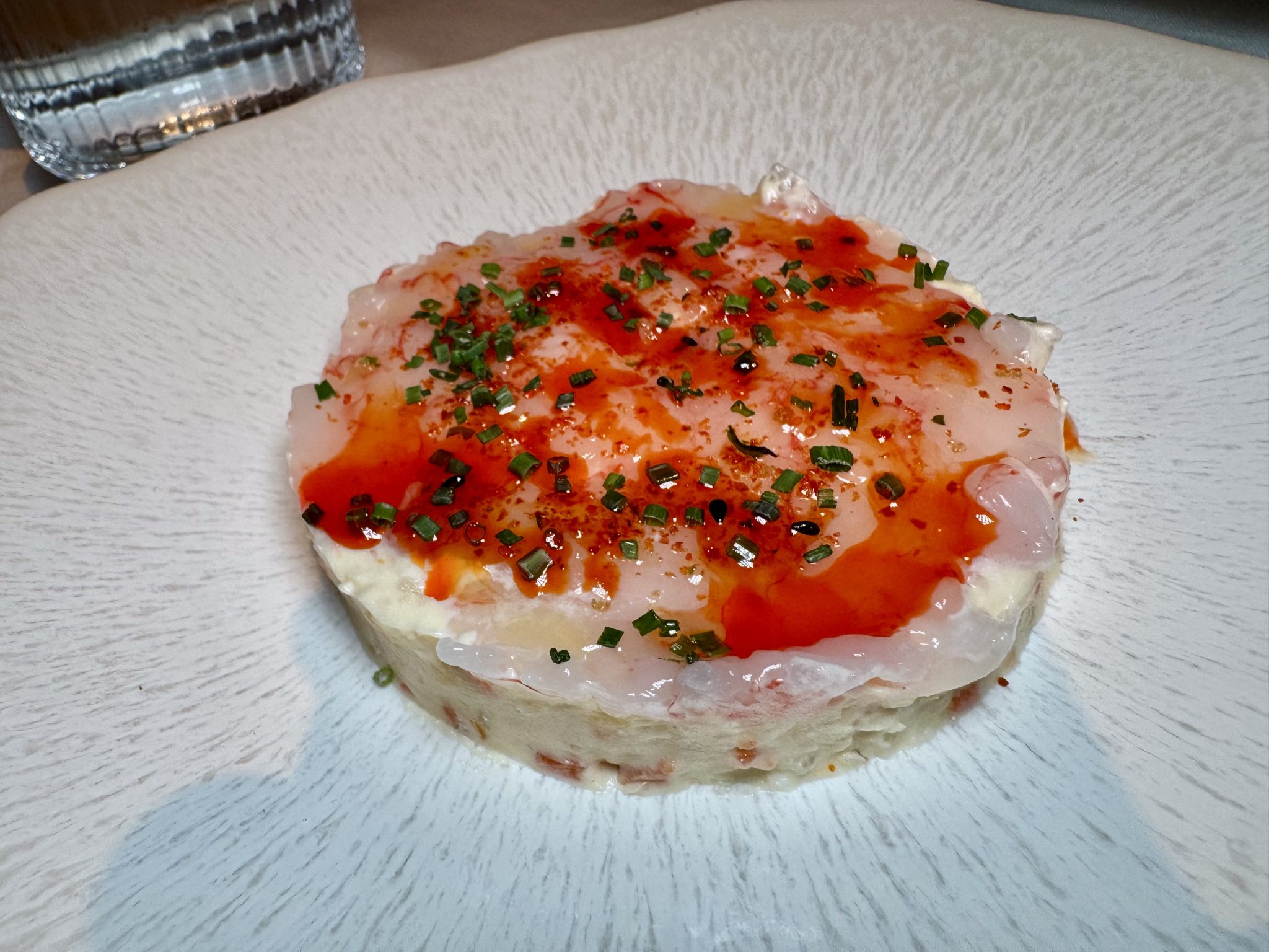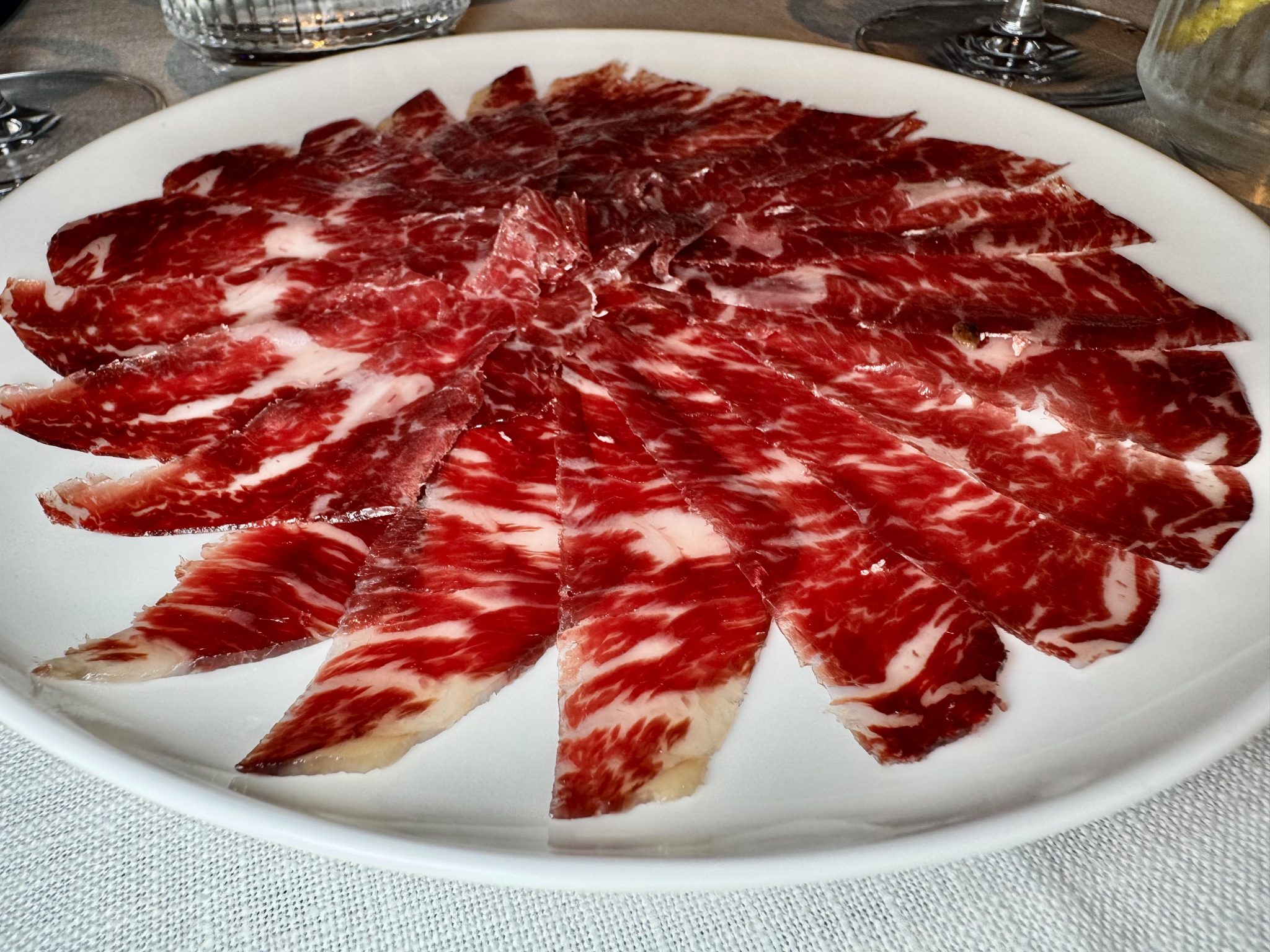 La carta, no muy extensa, contiene especialidades previsibles que basculan entre las más castizas como sus sabrosos callos a la madrileña (solo con morro y pata, sin estómago) o los boquerones en vinagre, a otras de corte nikkei como la corvina en sashimi a la crema de ají amarillo. Propuestas desenfadadas, en algunos casos pensadas para compartir, que arrancan con una selección de chacinas donde el jamón ibérico y la mortadela de Bolonia conviven con una excelente cecina de wagyu.