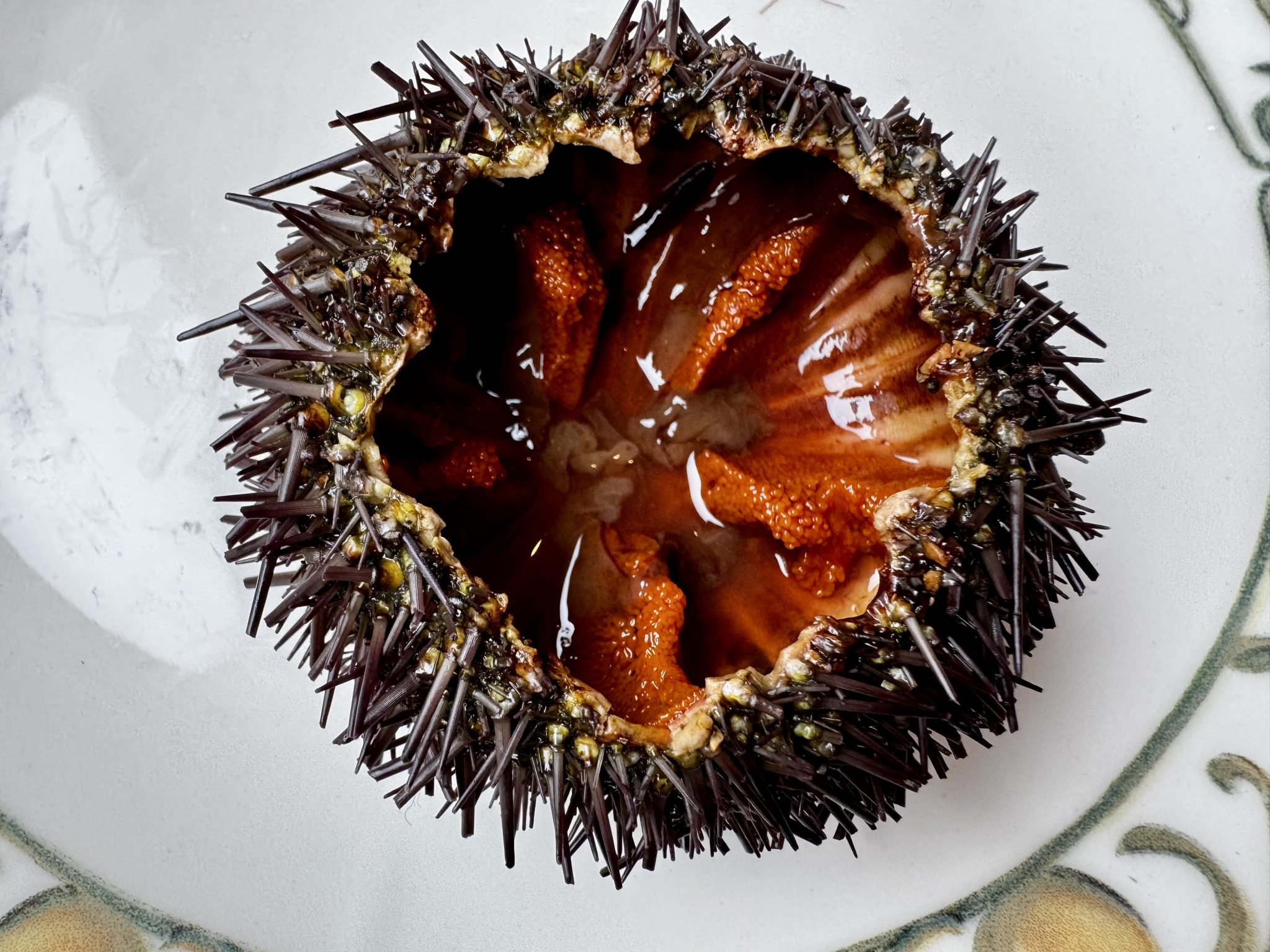1.- Selección de mariscos. 2.- Erizo marino. 3.- Ostra con salsa ponzu.