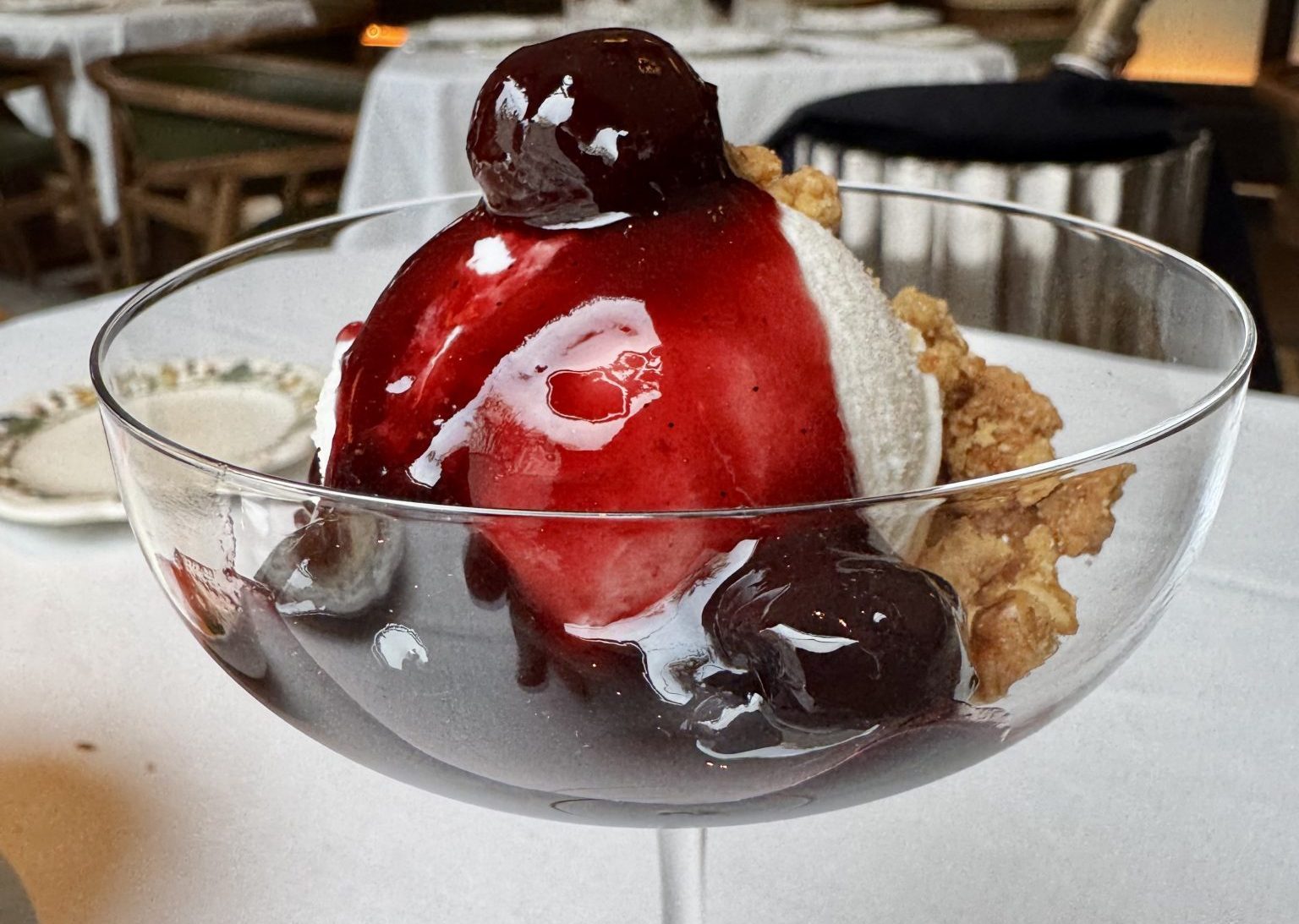 El capítulo goloso, a cargo del joven Toni Balle, desciende algunos escalones. Cumplen sin entusiasmar el flan de vainilla con helado, la tarta tatin de manzana y el helado de mascarpone con amarena En conjunto, un atractivo repertorio culinario con especialidades de mérito en un espacio retro y moderno, dentro de un enclave espectacular.