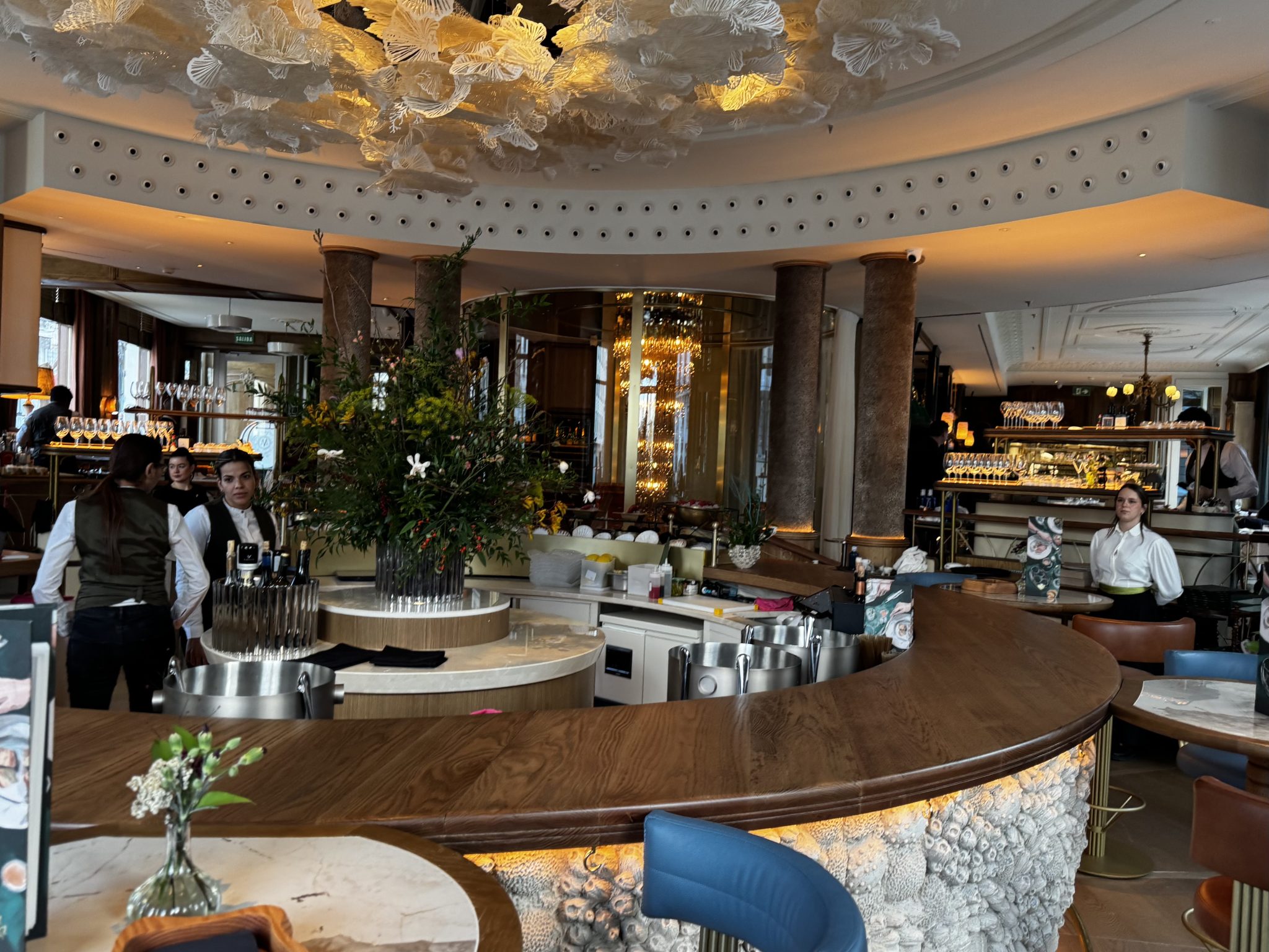 A las áreas situadas a ras de calle —Tasca Fina y Barra de Oricios—, se suma en el sótano el llamado Spa de las Langostas (nombre extraño para un restaurante y club nocturno a pesar de que el crustáceo acapare su carta), las tres únicas zonas accesibles al público en general. El resto, hasta completar las seis plantas de los pisos superiores —Victoria, La Galería, El Jardín (parrilla y brasas) y La Cúpula—, incluido un mini hotel boutique, se reservan para socios. Lo público y lo privado en una atrevida conjunción.