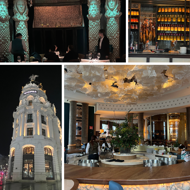 1.- Spa de las langostas. 2.- Los jamones de Tasca Fina. 3.- Fachada de Metrópoli. 4.- Barra de oricios.