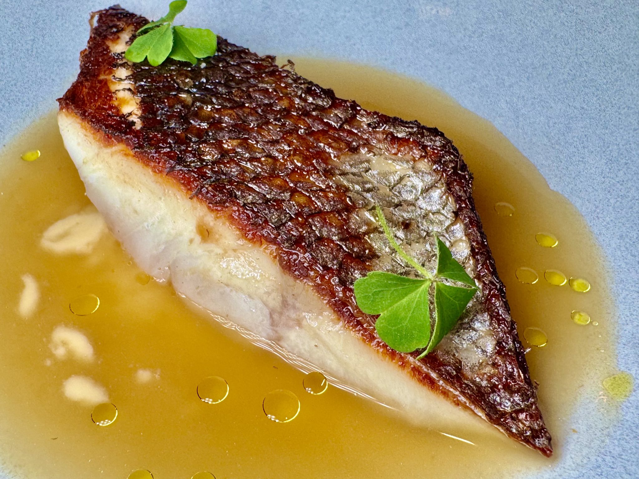La rutinaria insipidez de las vieiras la compensan con una suave crema de maíz y ajo negro, mientras que a los lomos de cabracho que tratan a la francesa y confitan con mantequilla y el contrapunto de un escabeche de naranja, añaden las aletas del pescado, fritas a la andaluza para rechupetear sus agallas y huesecillos con un excepcional mojo de cilantro.